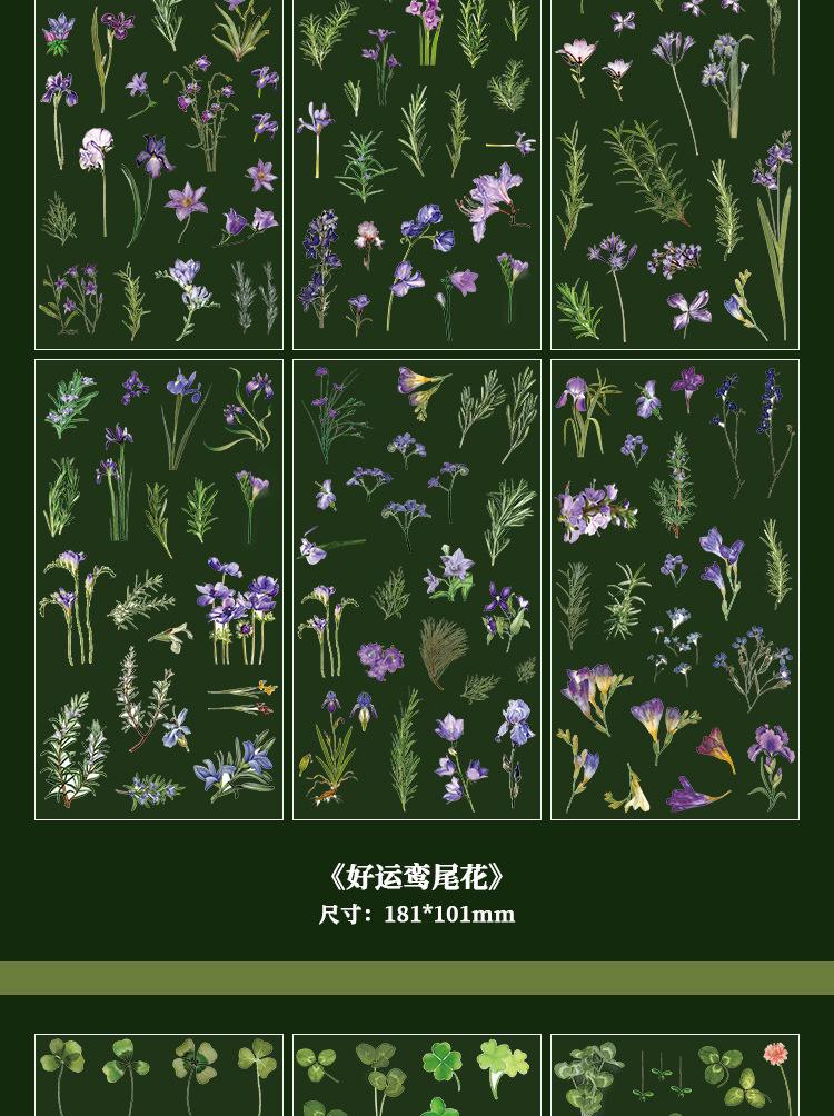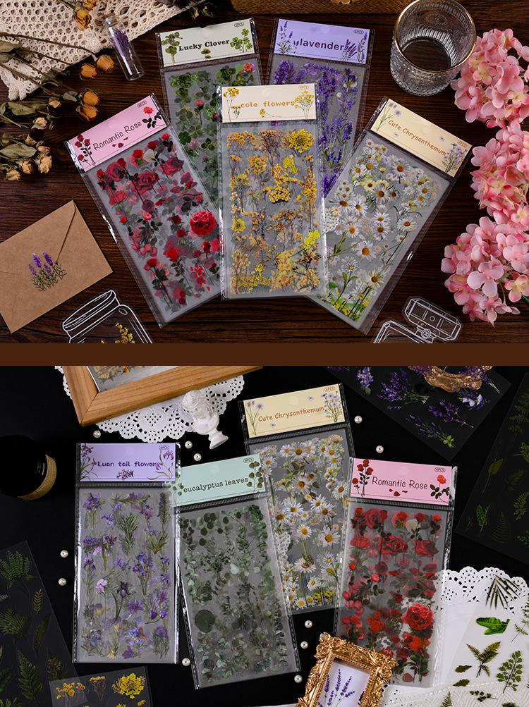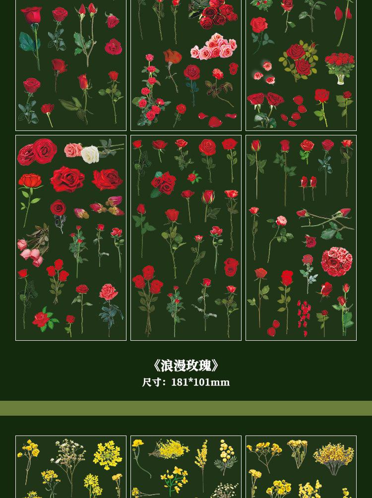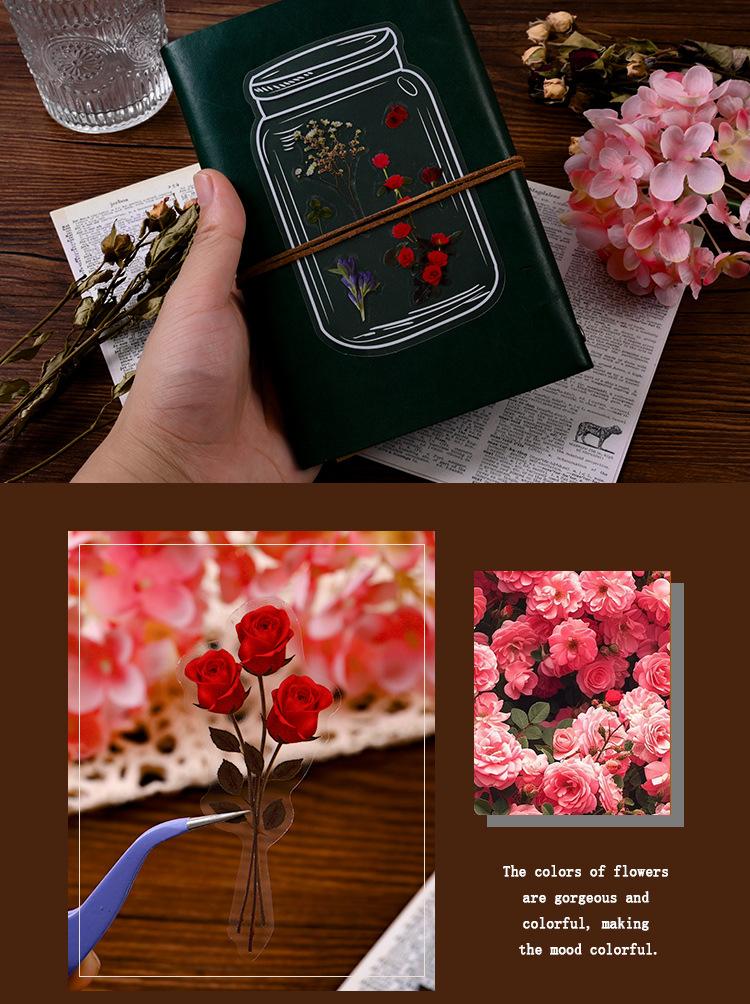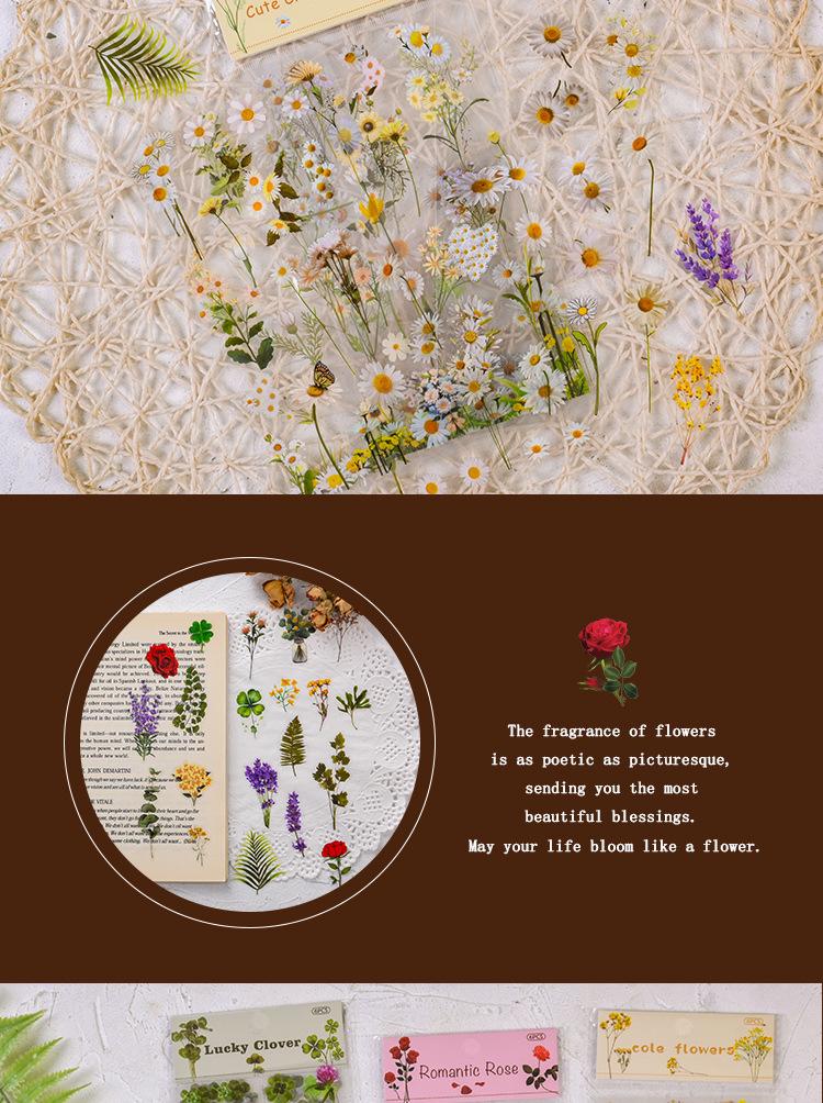 Cuatro Estaciones Lenguaje de las Flores Serie Manual Paquete de Stickers PVC Planta Flor Retro Papel de Material Manual para Niños Sticker DIY