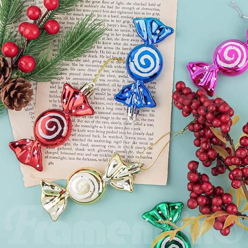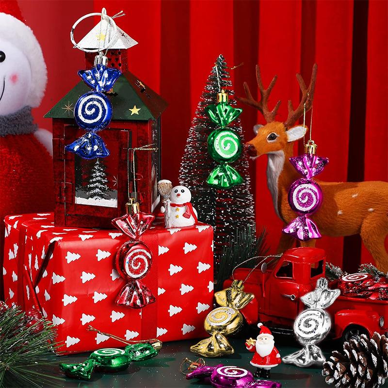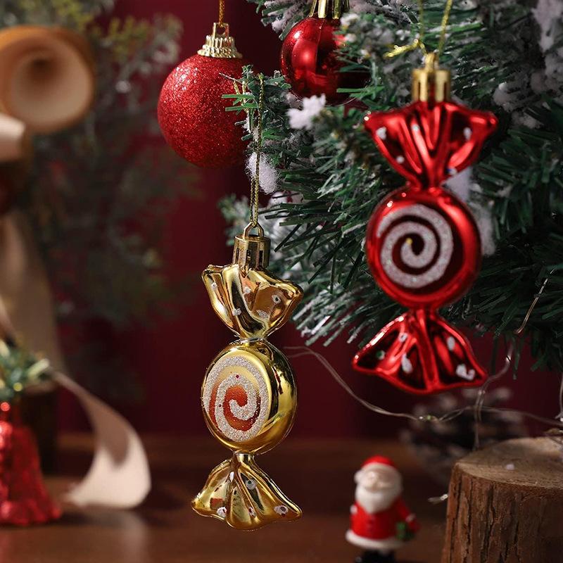 Bolas navideñas de plástico planas pintadas con adornos navideños, colgantes para árbol de Navidad, suministro directo transfronterizo de Amazon