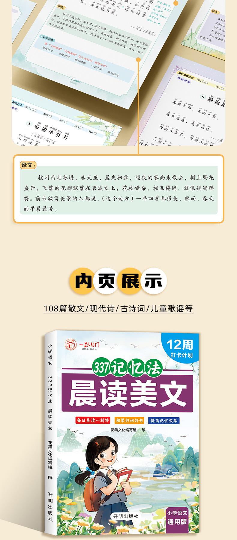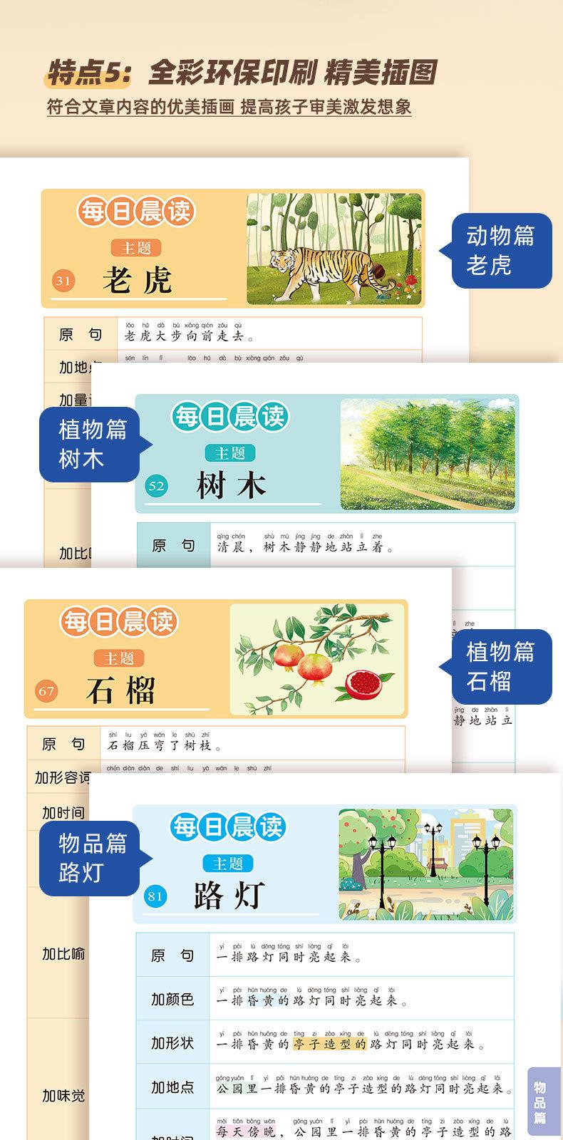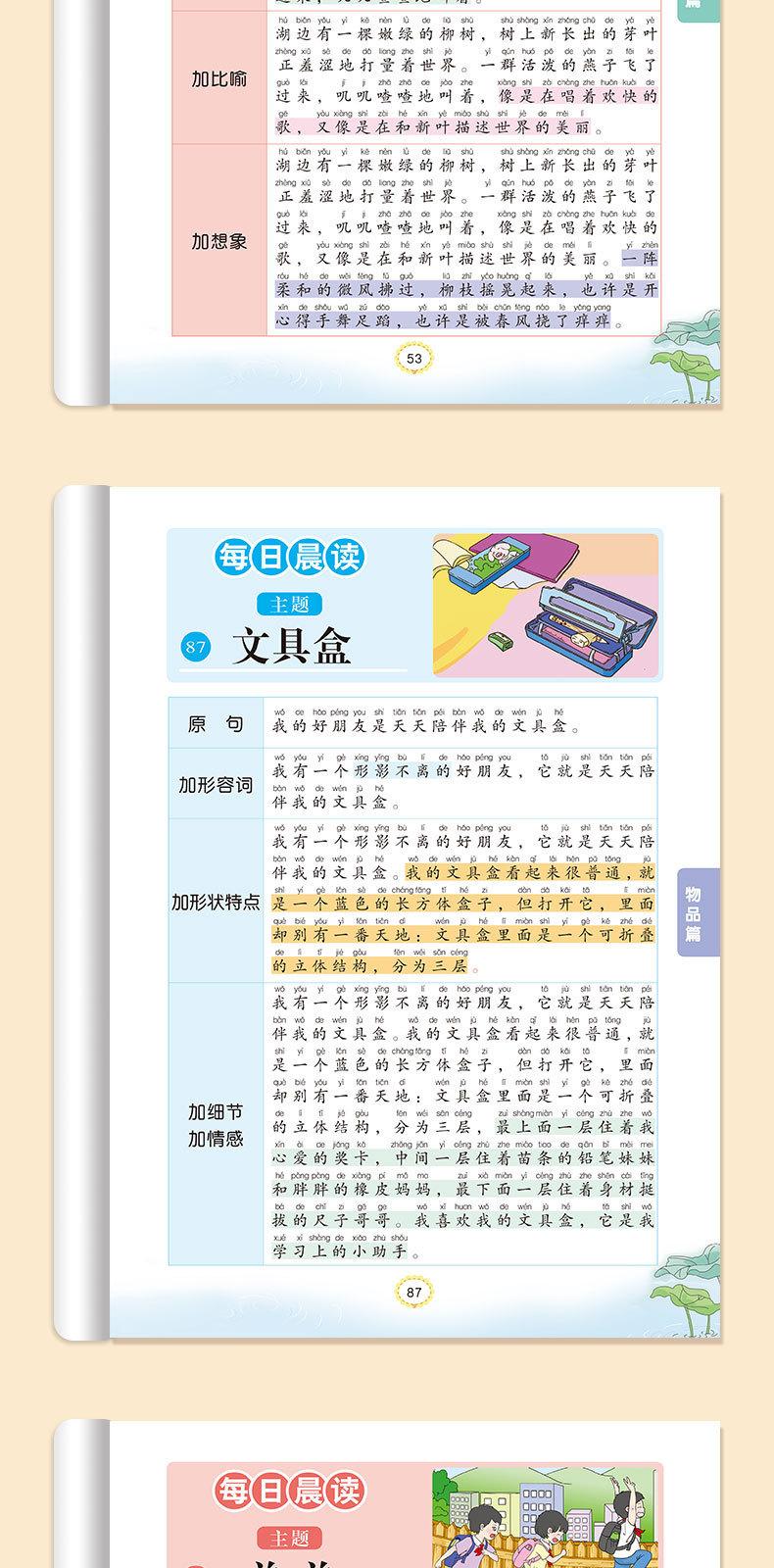 Lectura matutina diaria 100 artículos sintaxis ampliada 337 método de memoria lectura matutina hermosos artículos leer imágenes y escribir palabras escuela primaria composición china común