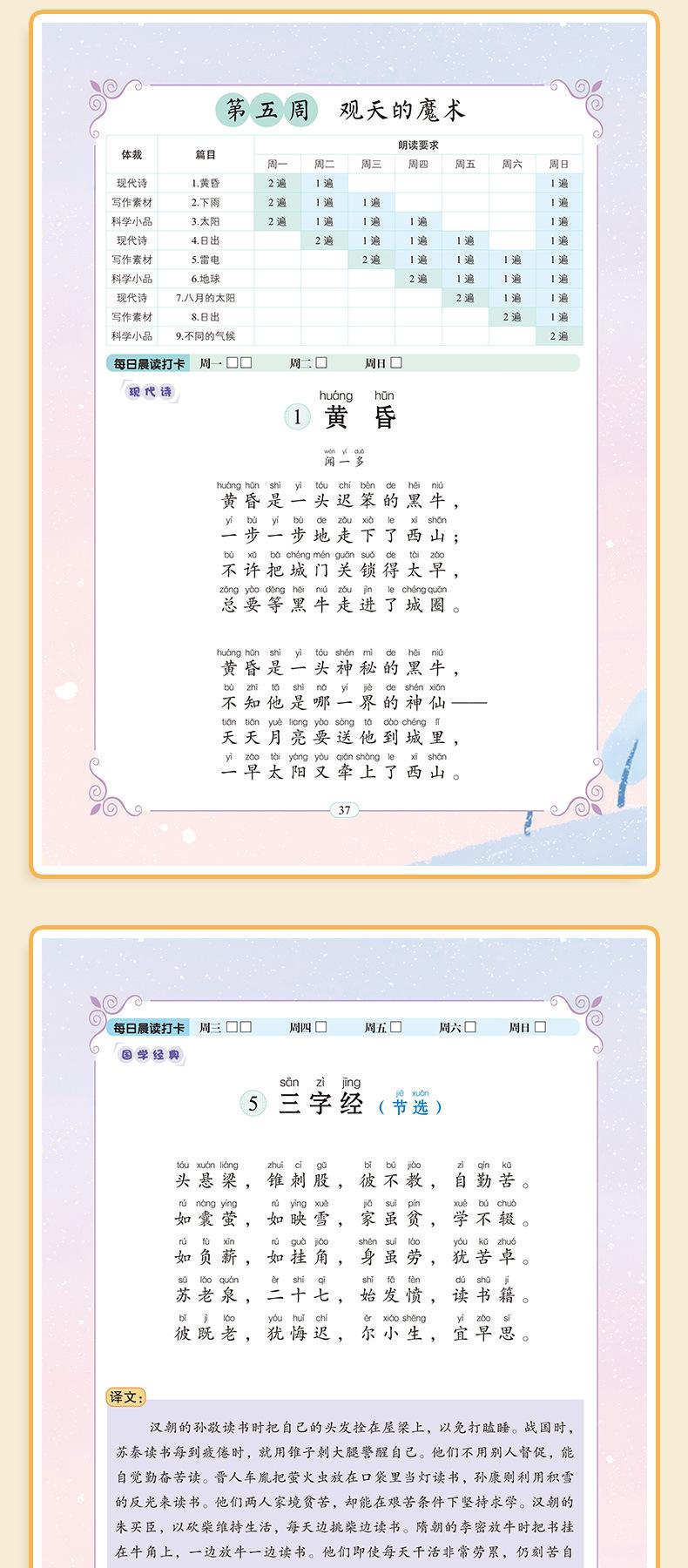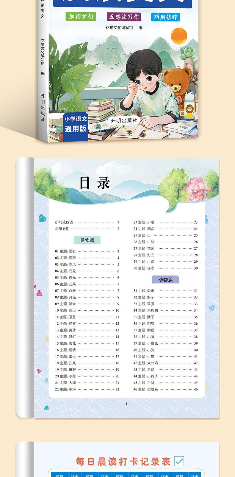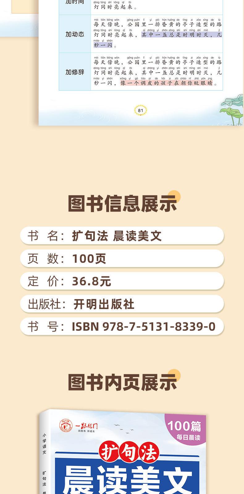 Lectura matutina diaria 100 artículos sintaxis ampliada 337 método de memoria lectura matutina hermosos artículos leer imágenes y escribir palabras escuela primaria composición china común