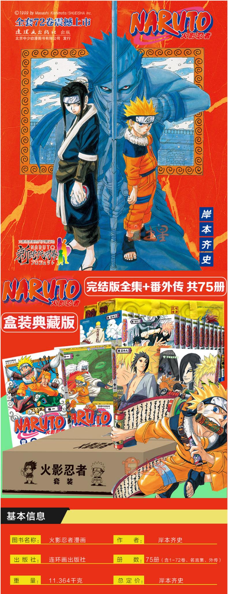 "Naruto" describe un mundo de ninjas, donde la profesión ninja es el sueño de todos los jóvenes. La historia gira en torno al Genin de Konoha liderado por Uzumaki Naruto. La batalla entre la justicia y el mal, el bien y el mal, se presenta de manera realista al público, lo que brindará a los lectores una nueva experiencia. "Naruto (Parte 2) (Volúmenes 28-52) (Juego de 25 Volúmenes)" tiene un total de 25 volúmenes.