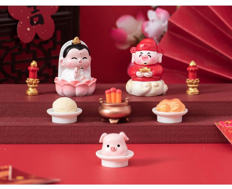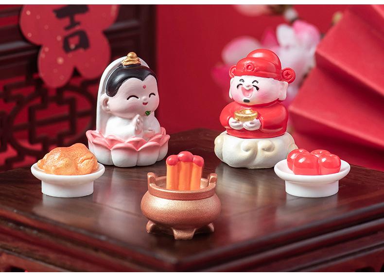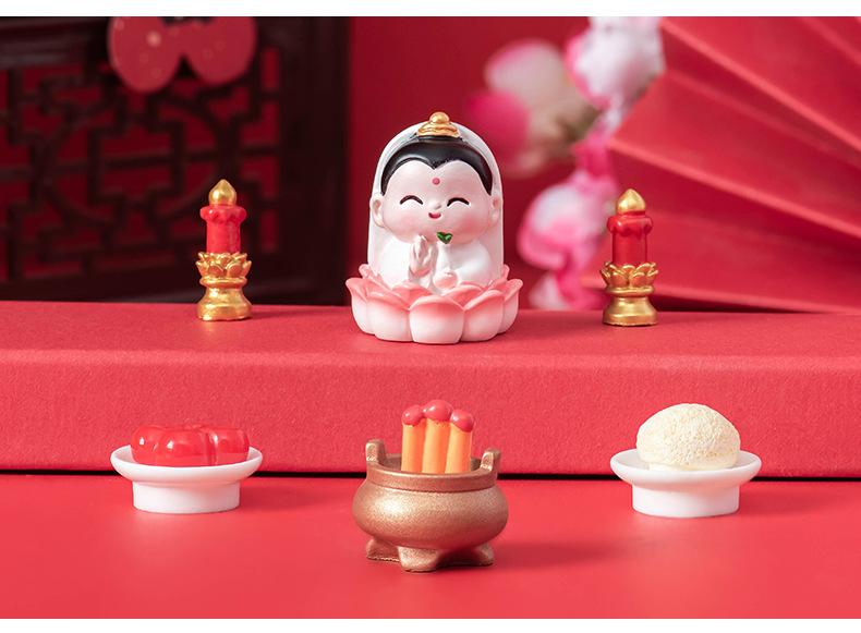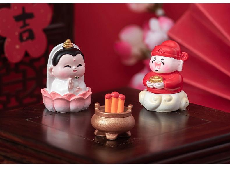 Adoración de Año Nuevo Guanyin Pequeño Dios de la Riqueza Artesanías de Resina Caja Ciega Accesorios Micro Paisaje Escritorio Coche Carga Fortuna Pequeños Adornos