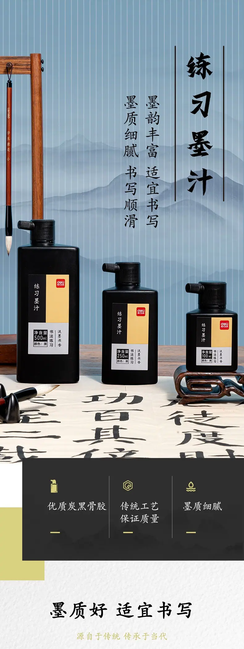Deli 74291 practice ink (black) (100ml/bottle), Deli 74292 practice ink (black) (250ml/bottle), Deli 74293 pra...