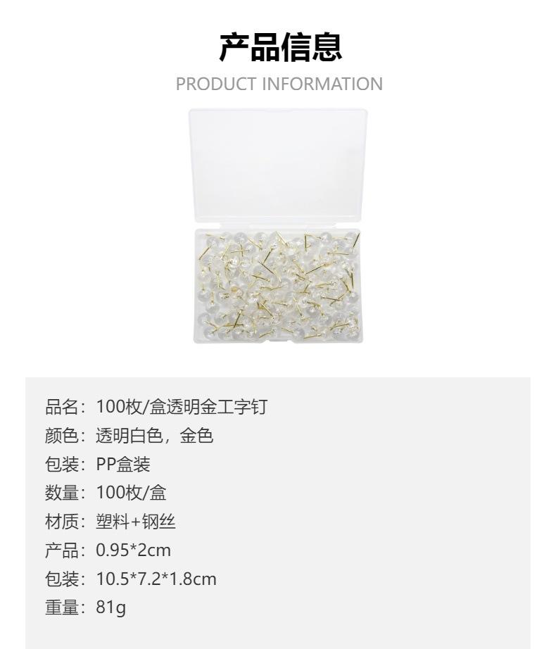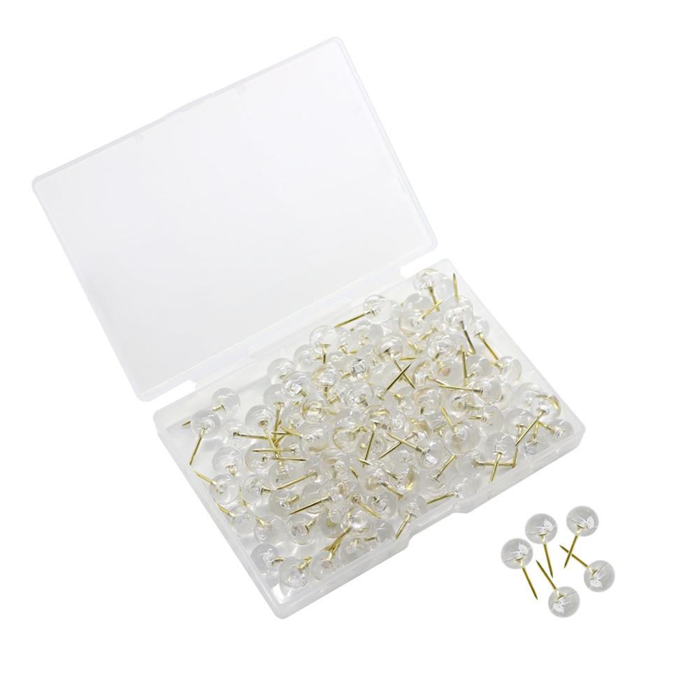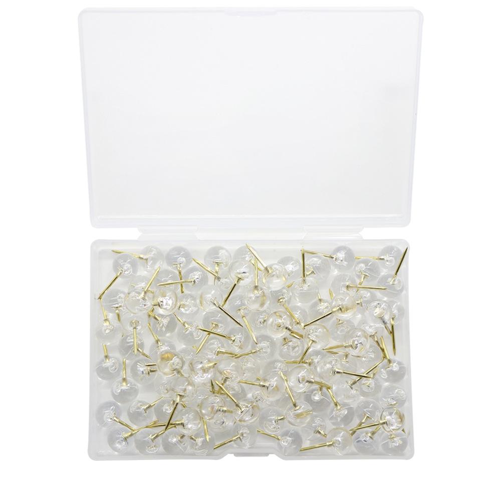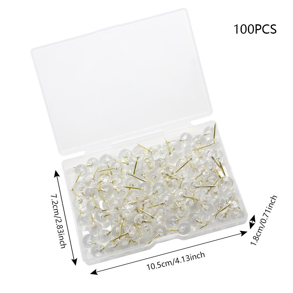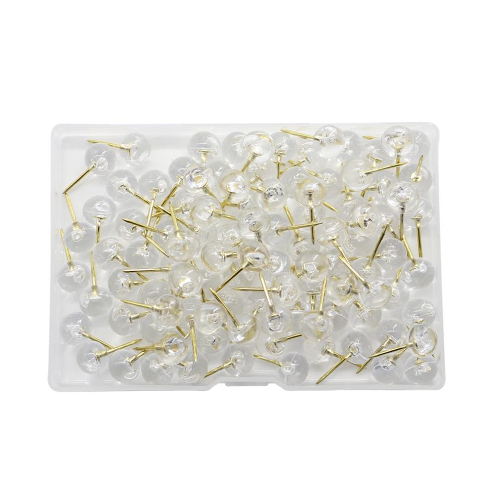 Venta al por mayor transfronteriza de clavos de bola de oro transparente de 9,5*20 mm, 100/caja, para decoración de tableros de corcho de pared de fotos, clavos fijos