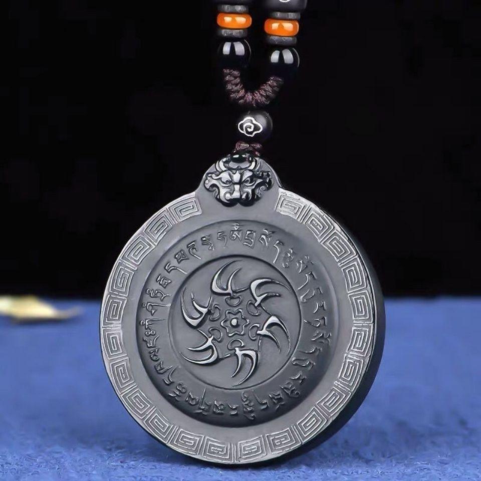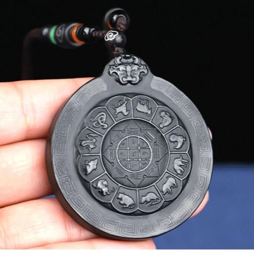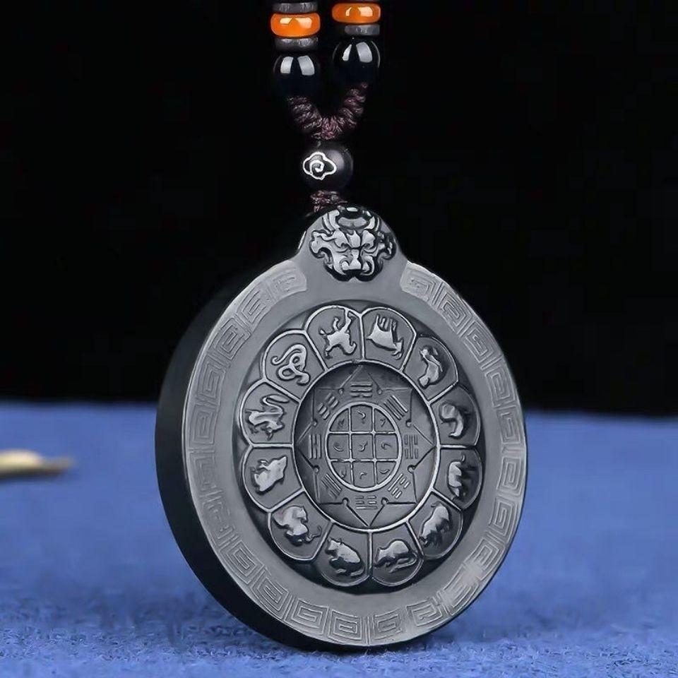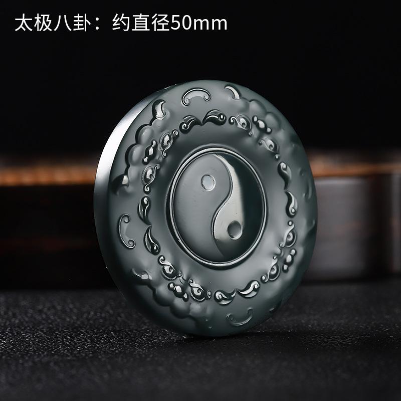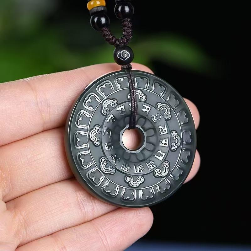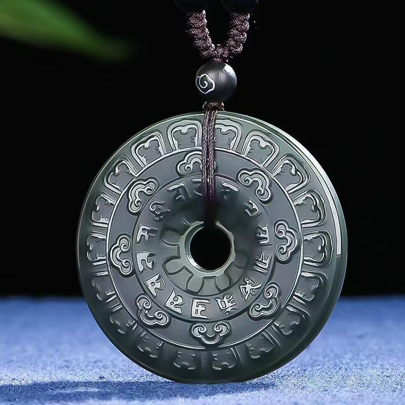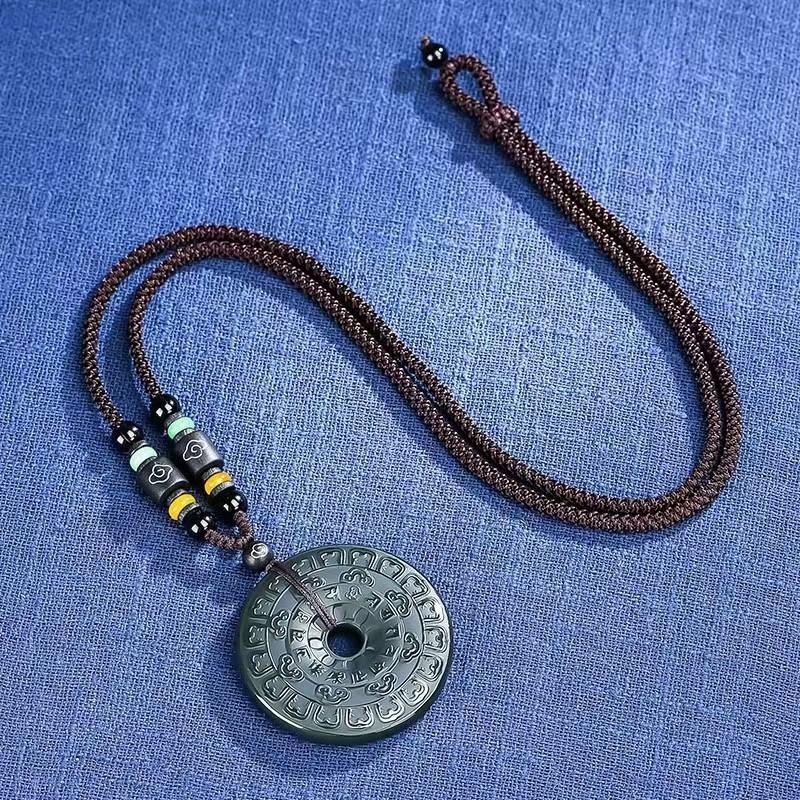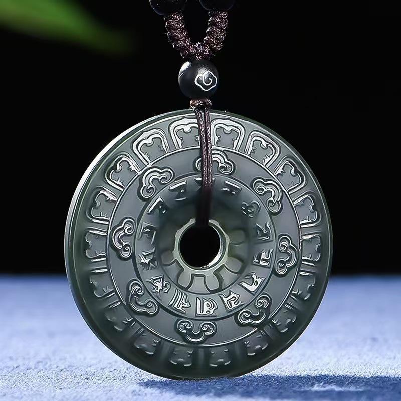 【nombre del producto】 | Jade de Hetian Jade Verde Material Fino Taqing Zodíaco Ocho Trigramas Mantra de Seis Sílabas Colgante |