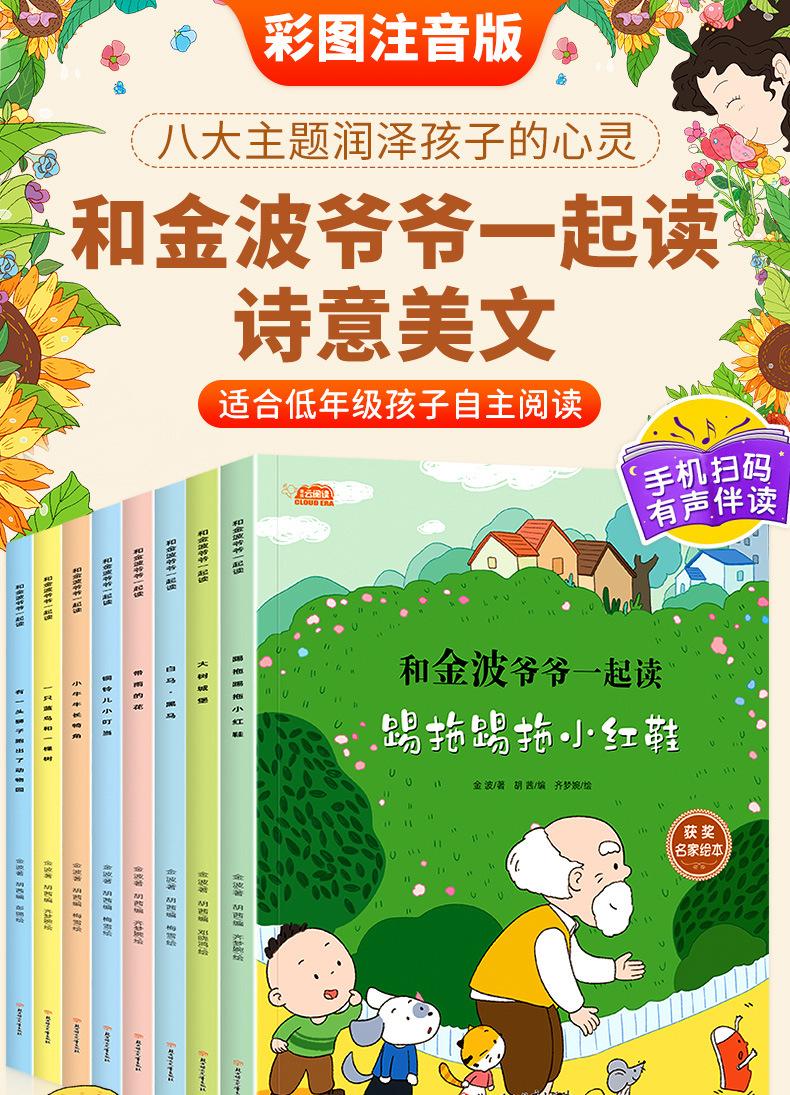 Libros extracurriculares de lectura obligatoria para primer grado y leer con el abuelo Jinbo, los 8 volúmenes de libros de versión fonética recomendados para escuelas primarias