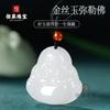 Colgante de jade Maitreya de seda dorada, sebo de jade blanco de Xinjiang Hotan, Buda sonriente blanco, colgante de jade de Buda, jade natural al por mayor