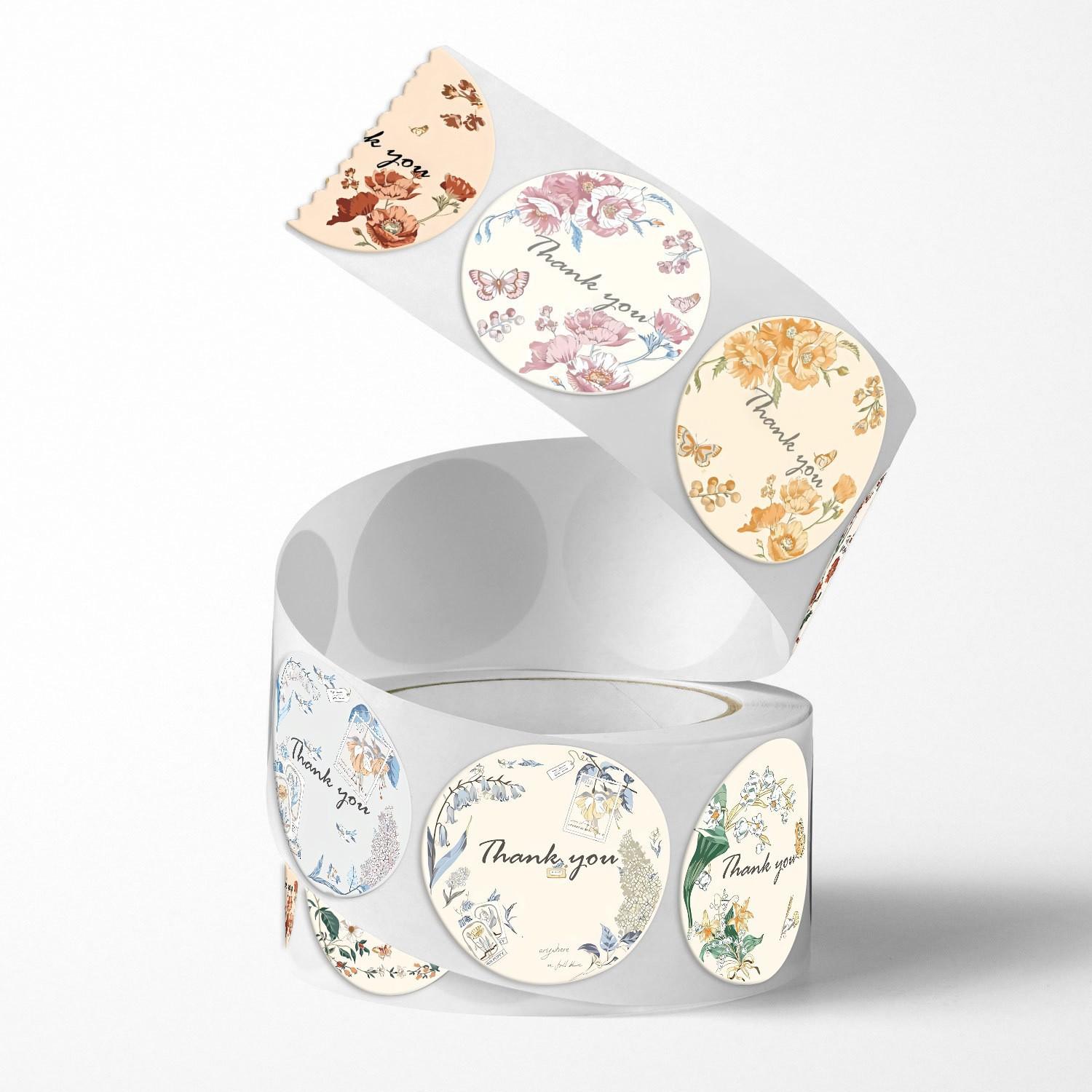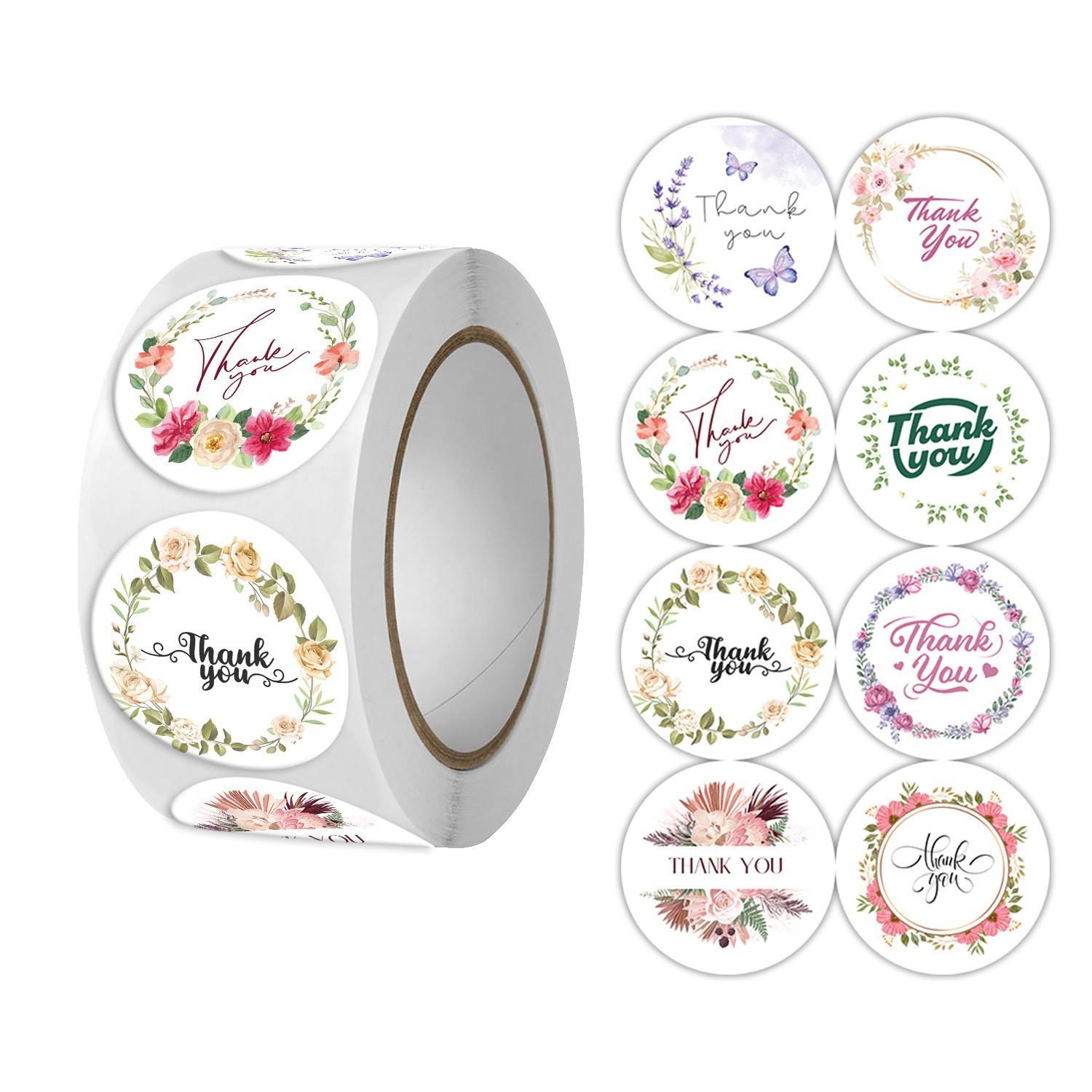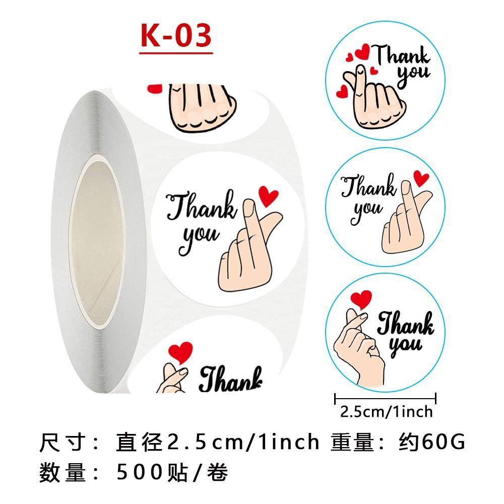 Pegatina de agradecimiento, regalo, 500, 1 rollo, cinta de embalaje, sellado, pasta adhesiva transfronteriza, venta al por mayor, redonda