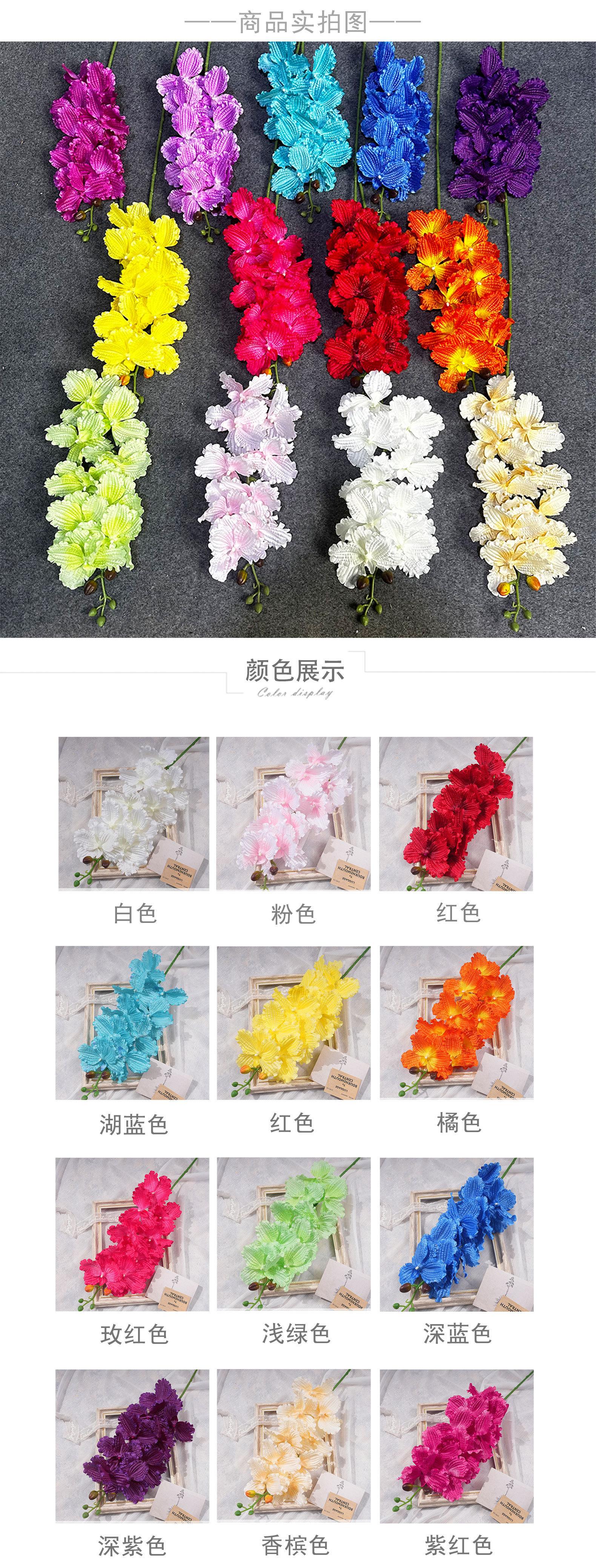 Orquídea de Nueve Cabezas Simulada Ramo de Flores Artificiales de Seda Falsa Flores de Boda Acabado Adornos de Decoración para Sala de Estar Flores de Plástico Florales