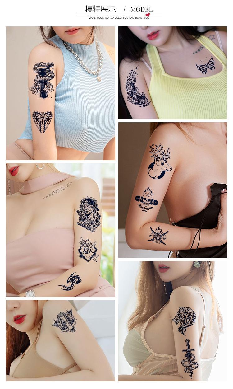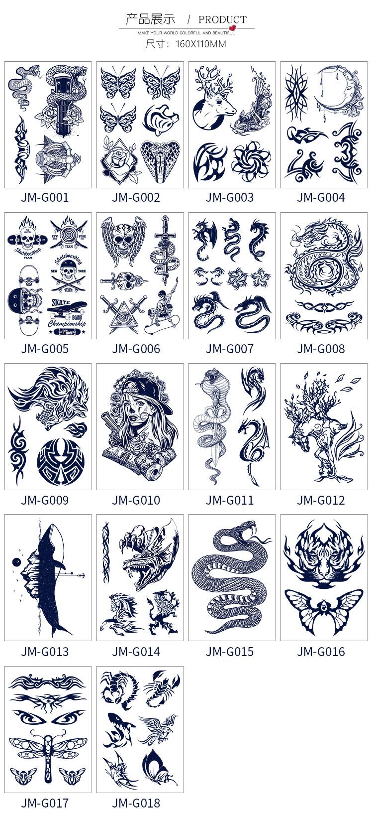 Pegatinas de tatuaje de hierbas, jugo de planta, semipermanentes, que cambian de color, resistentes al agua, realistas, de larga duración, simulación de tatuaje oscuro.
