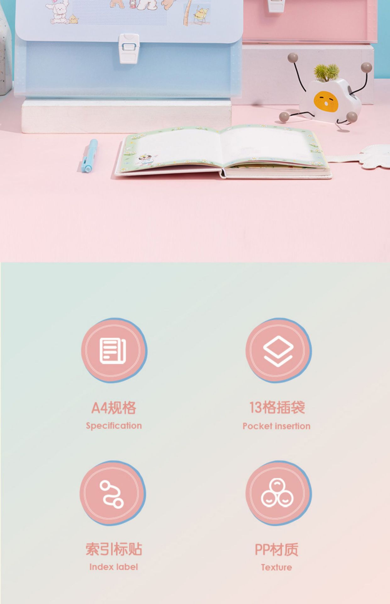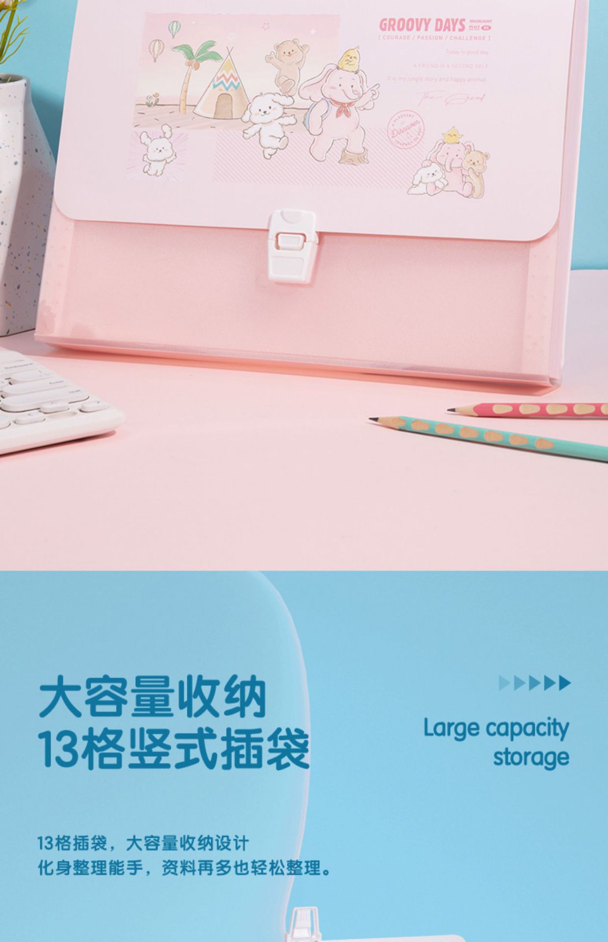 Deli PM302_13 carpeta organizadora de rejilla A4 gran capacidad portátil inserta papel multicapa clasificación bolsa de almacenamiento carpeta