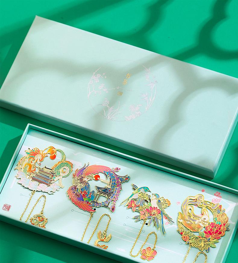 Marcador de Metal Estilo Chino Clásico Caja de Regalo Creativa Grabado Regalo de Graduación Universidad Ciudad Prohibida de Beijing