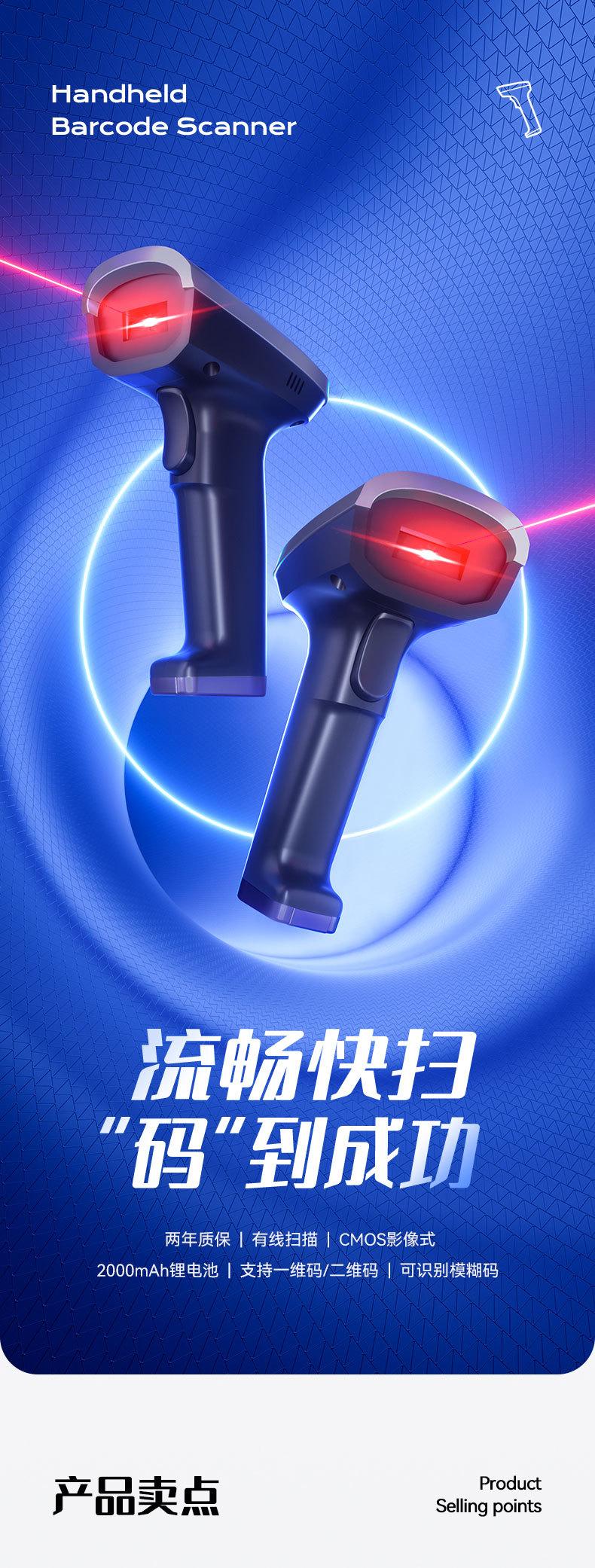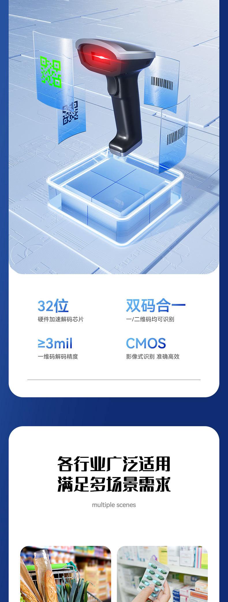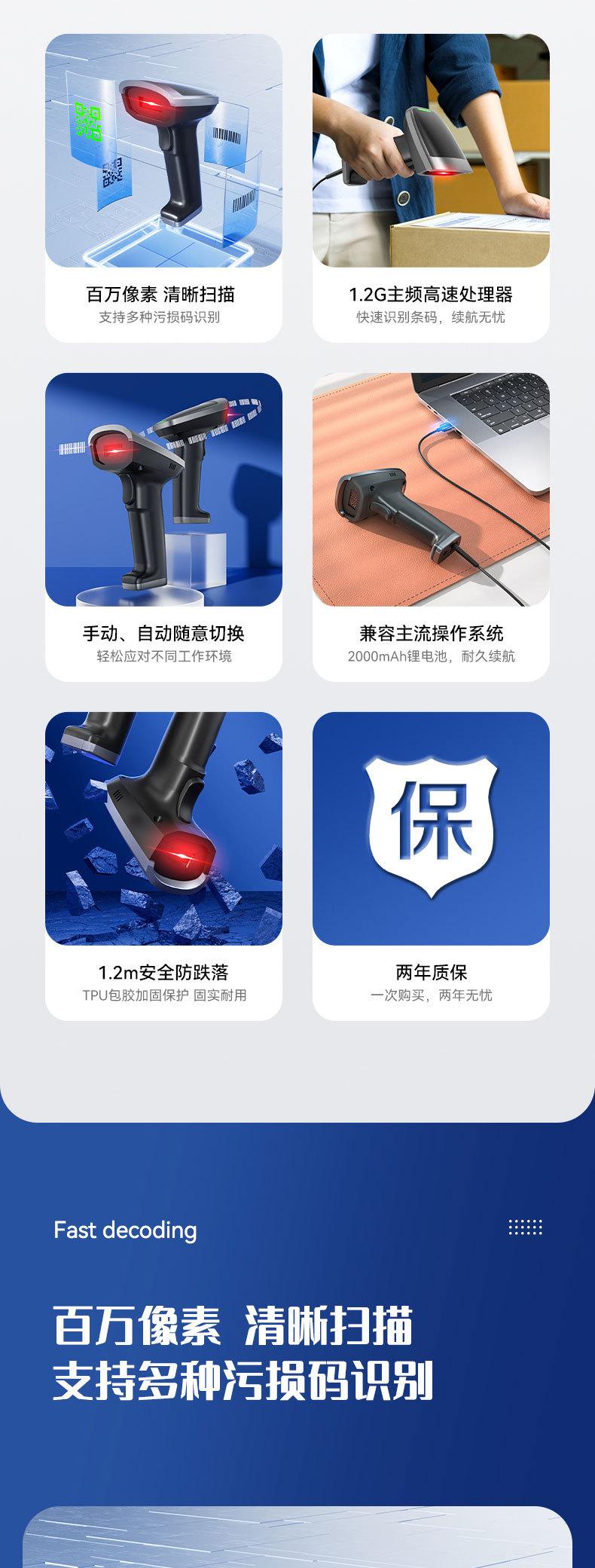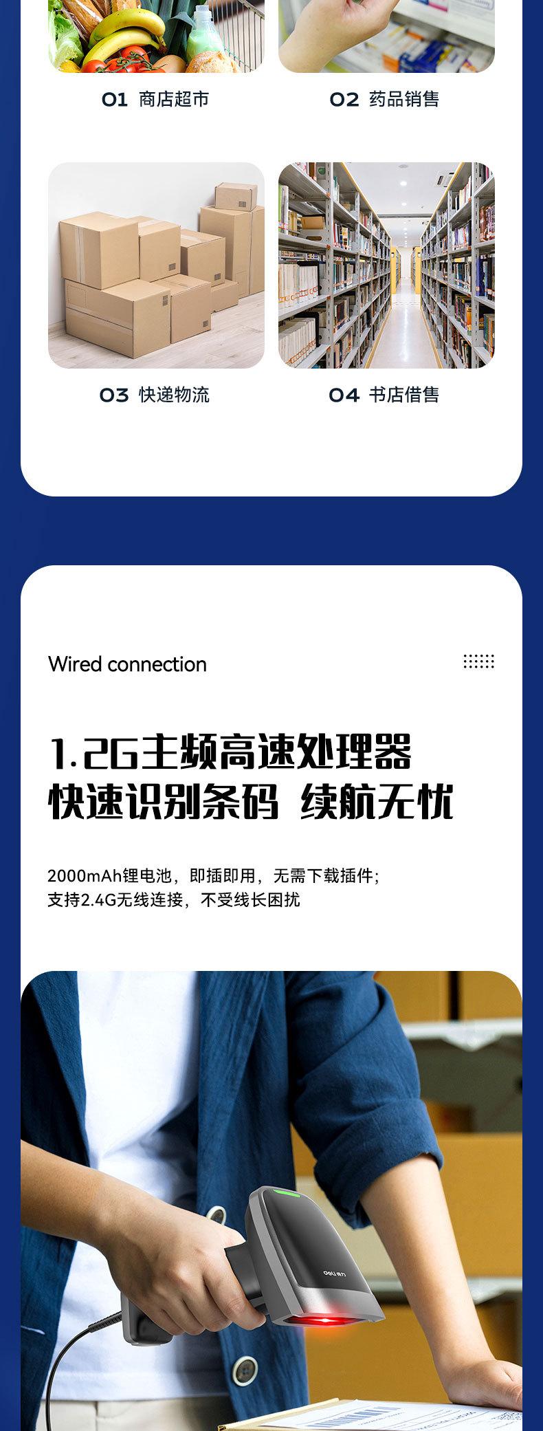 Pistola de escaneo de código de barras Deli AA308, caja registradora inalámbrica para supermercado, escáner exprés con código bidimensional y Bluetooth