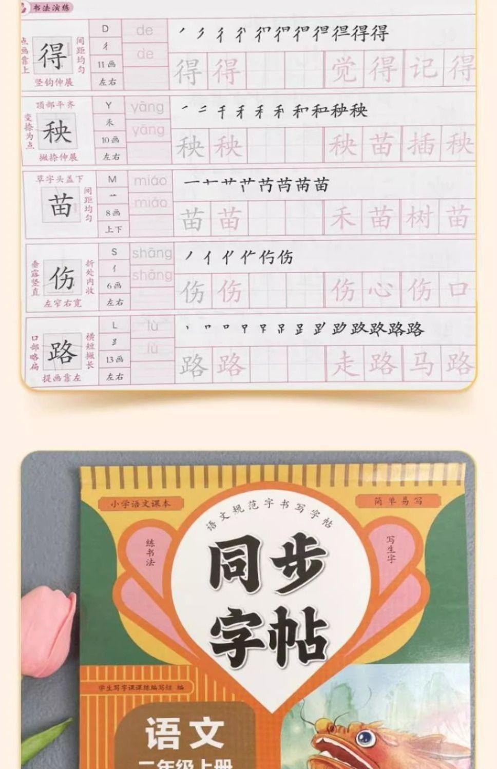 El primer volumen del cuaderno de práctica sincrónica de chino de segundo grado, copia impresa de la práctica diaria PEP sincrónica genuina para estudiantes de la escuela primaria.