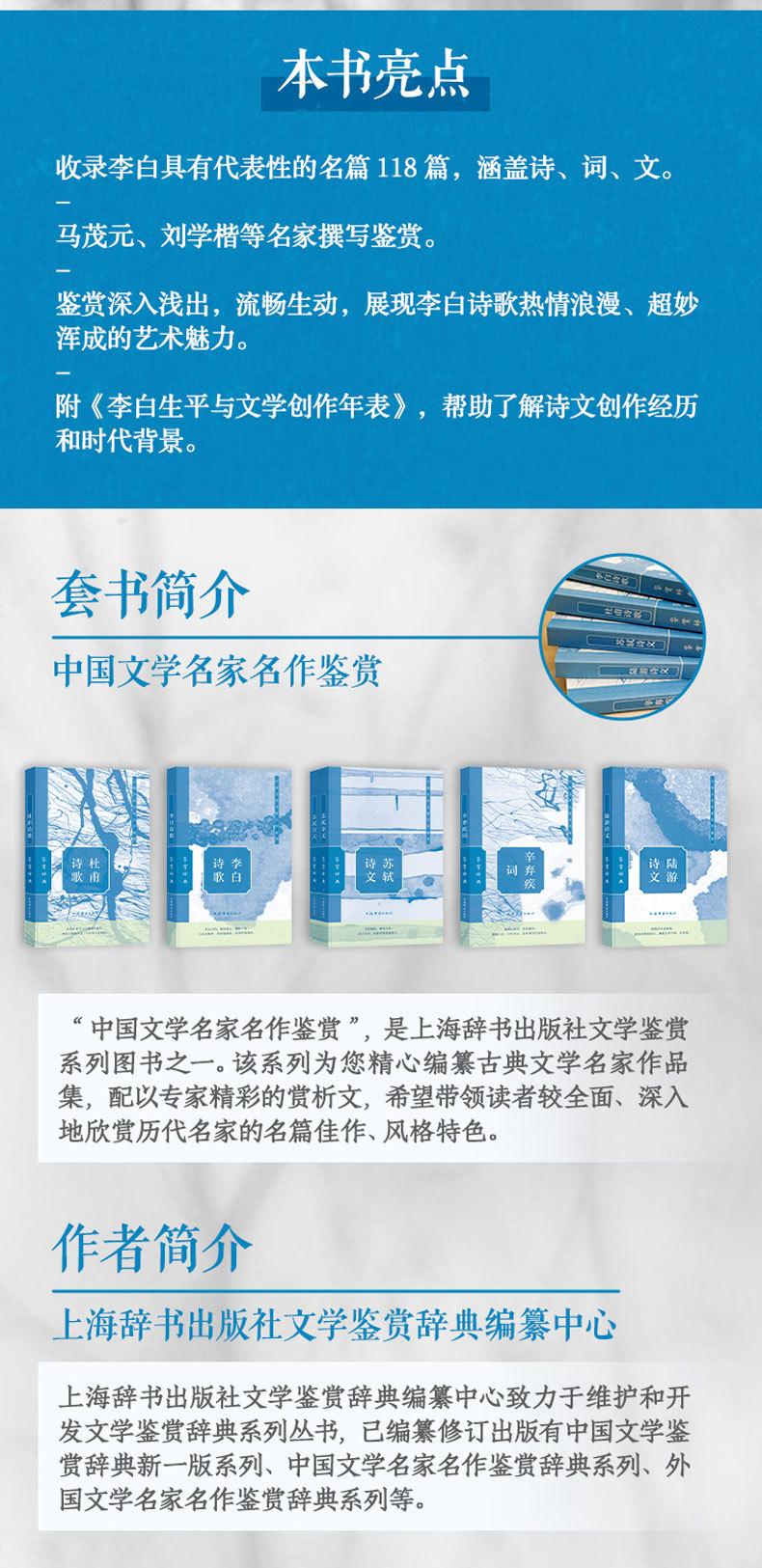 Diccionario de apreciación poética de Li Bai Novelas y poemas clásicos chinos Editorial Diccionario de Shanghái