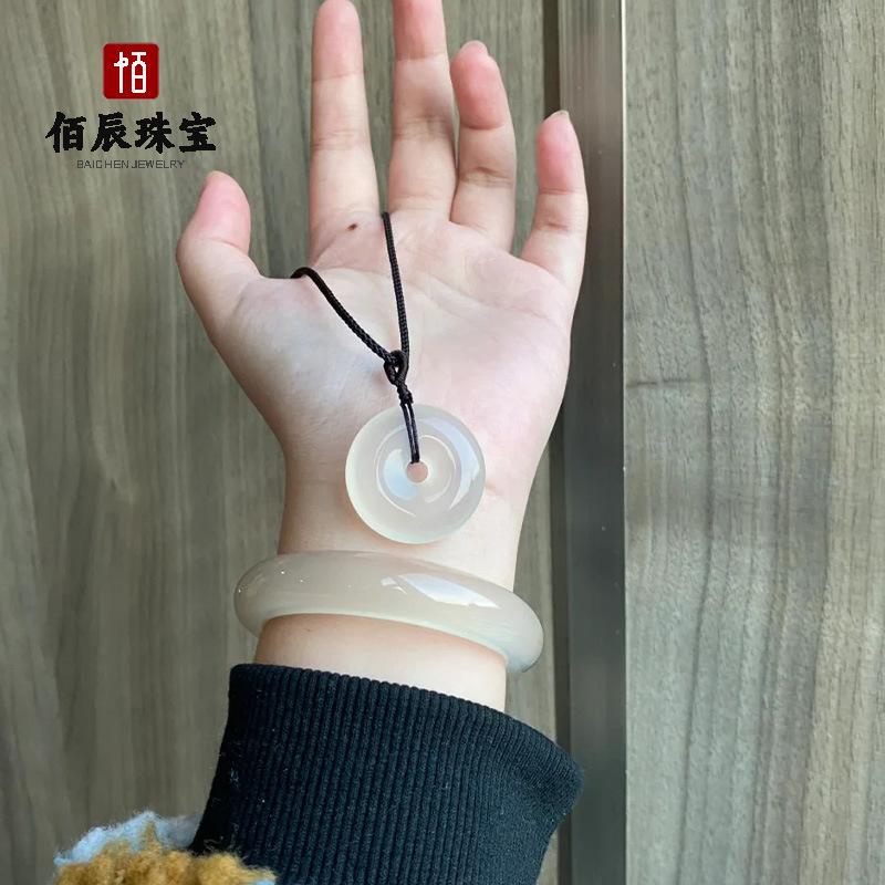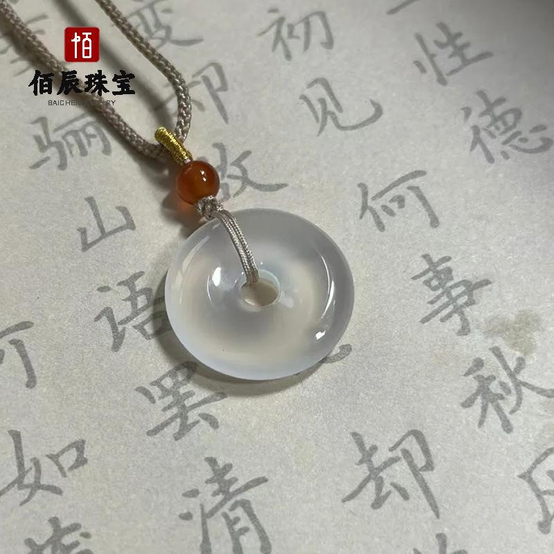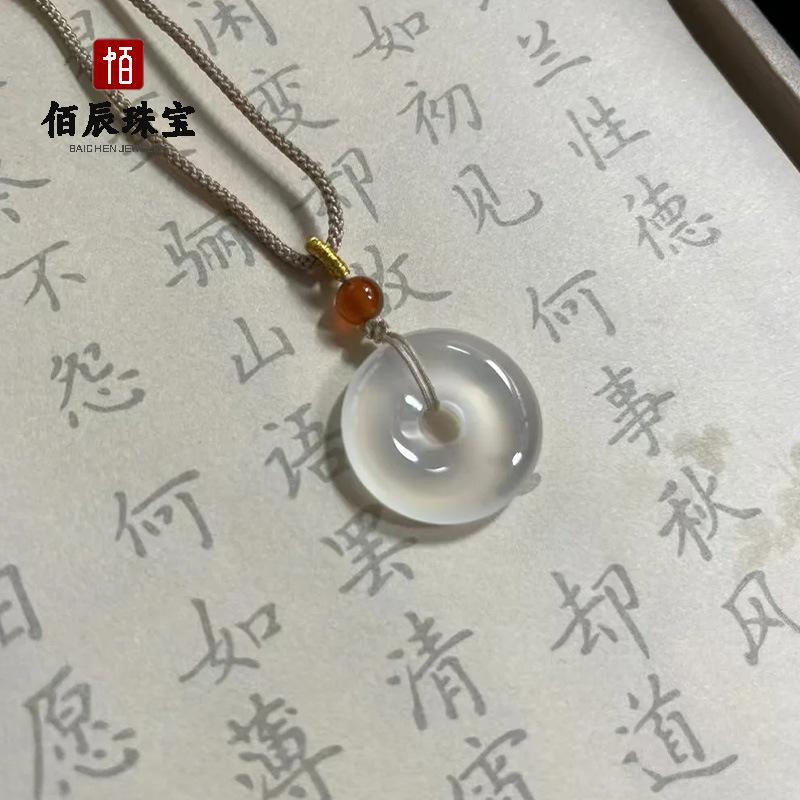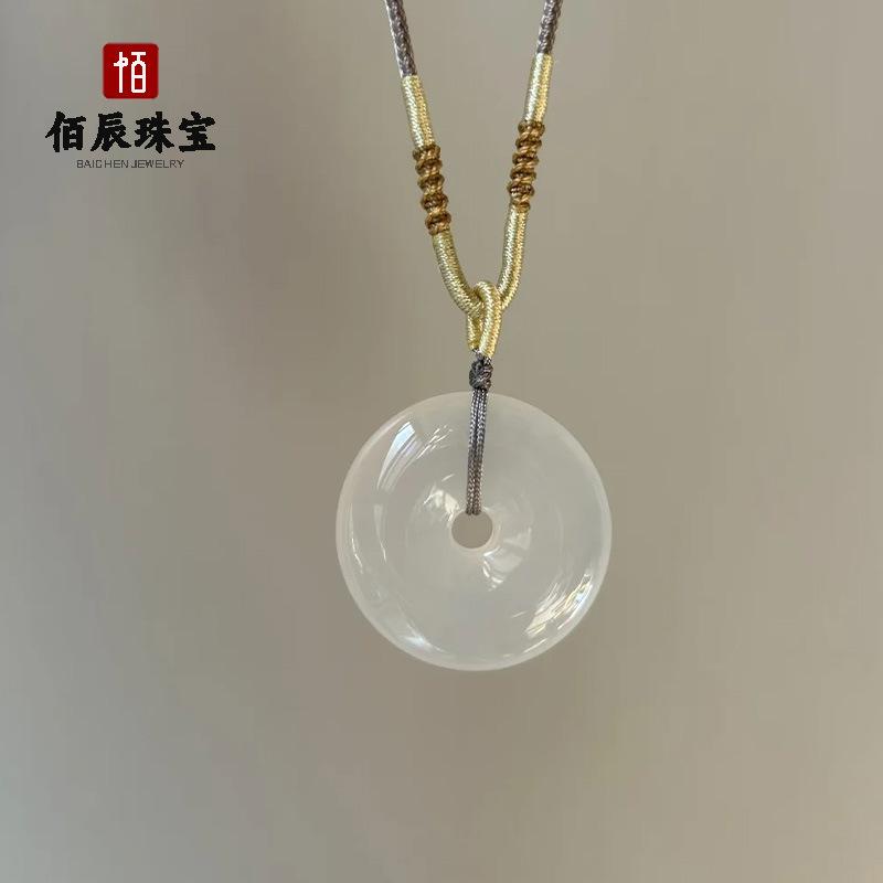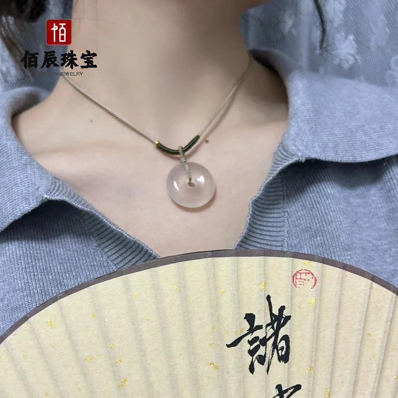 Collar de calcedonia blanca con hebilla de seguridad de hielo natural, colgante de jade tejido, estilo chino simple, nuevo regalo de estilo chino para niñas.