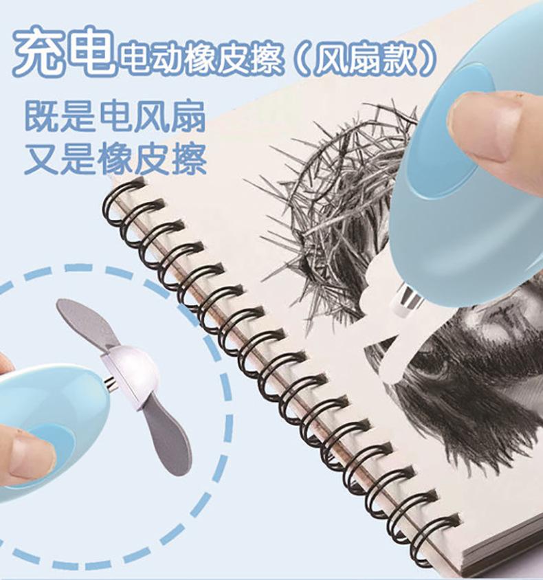 Borrador eléctrico automático para estudiantes, borrador de lápiz para bocetos artísticos, recargable, multifuncional, con cinturón de goma y ventilador de 820 °F.
