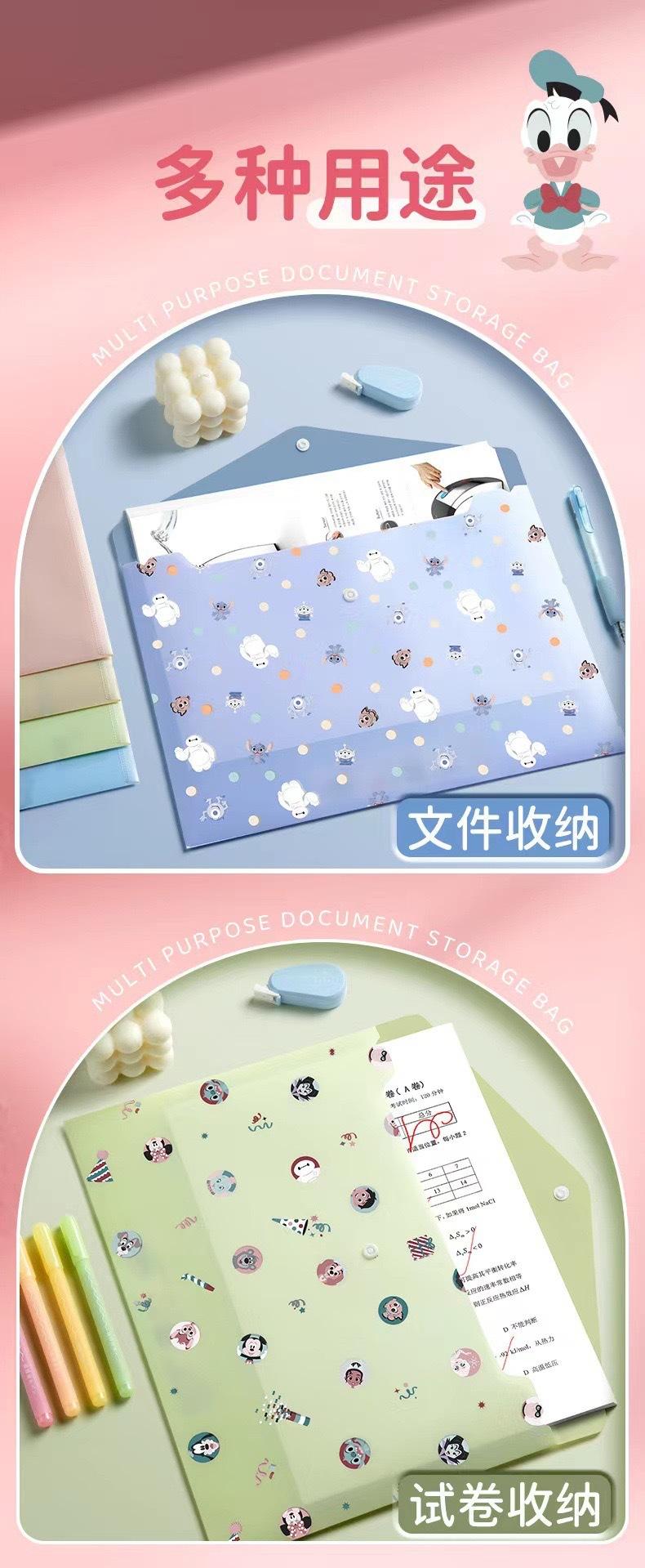 Bolsa de archivo de dibujos animados A4, bolsa de almacenamiento de papelería de papel transparente, cierre de presión de polipropileno, bolsa de archivo de información de oficina, venta al por mayor