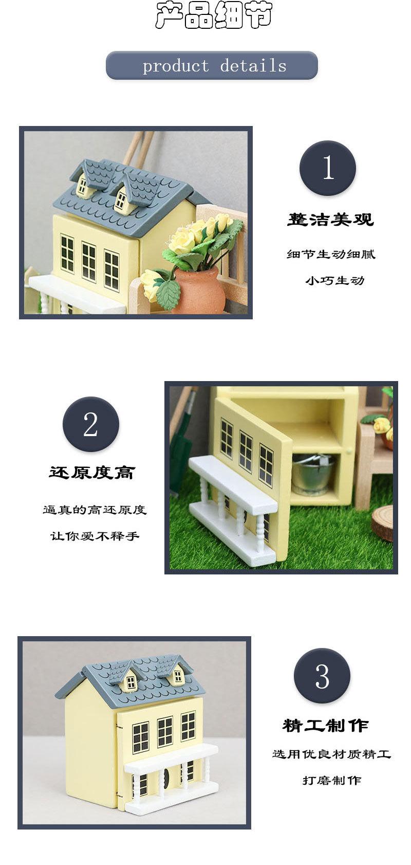 1:12 Mini casa de muñecas, muebles de casa de muñecas, casa pequeña en miniatura, gris, linda villa de manga, adornos de simulación