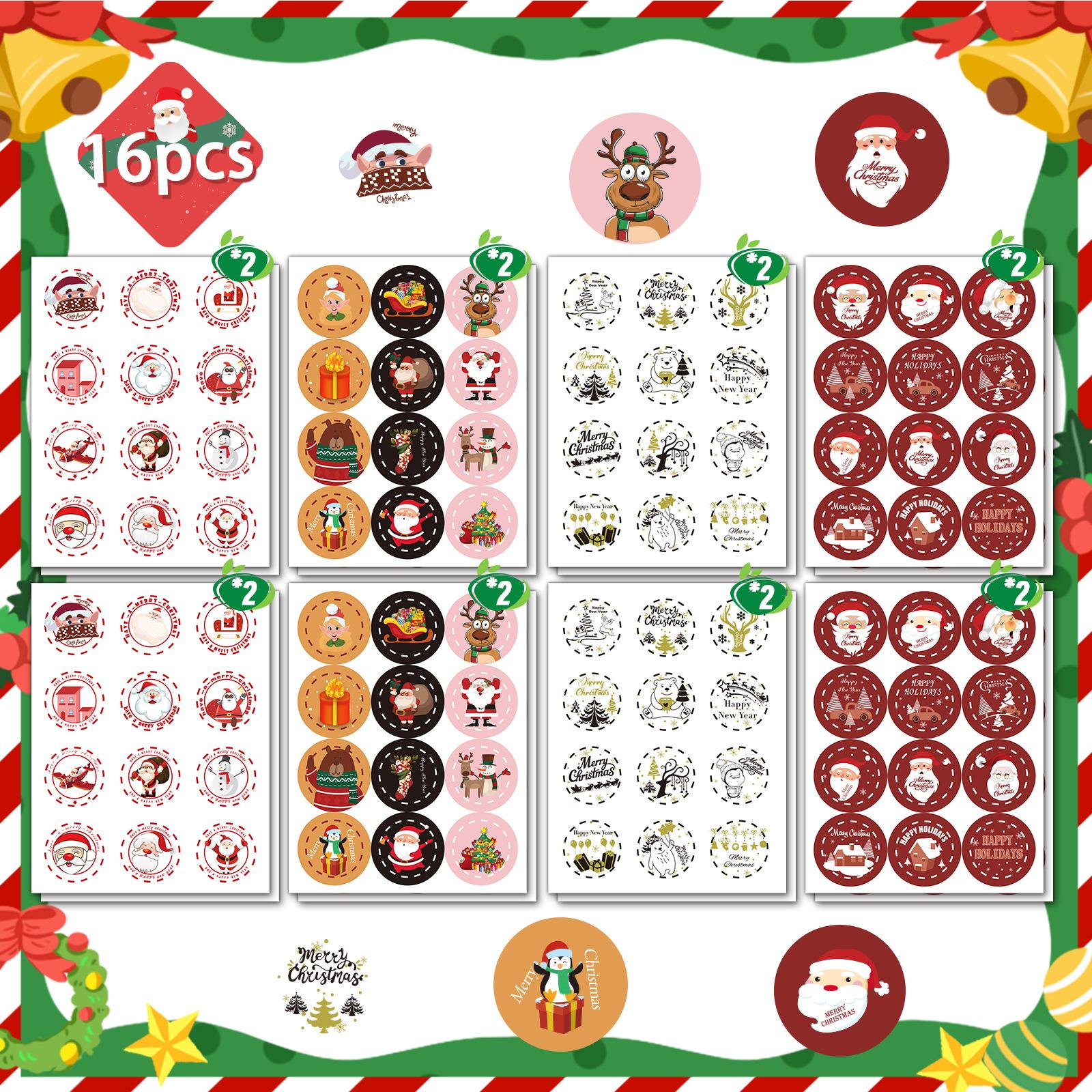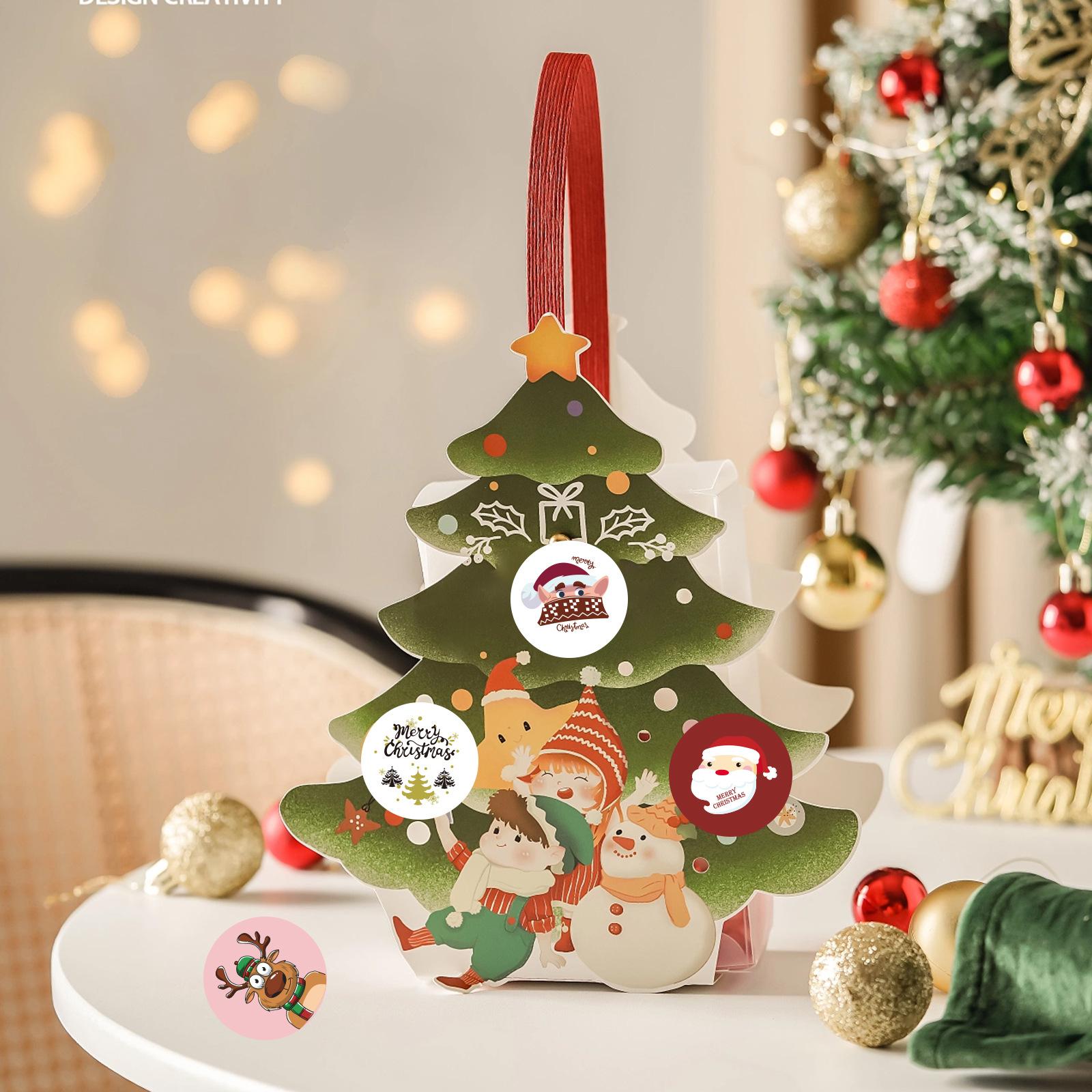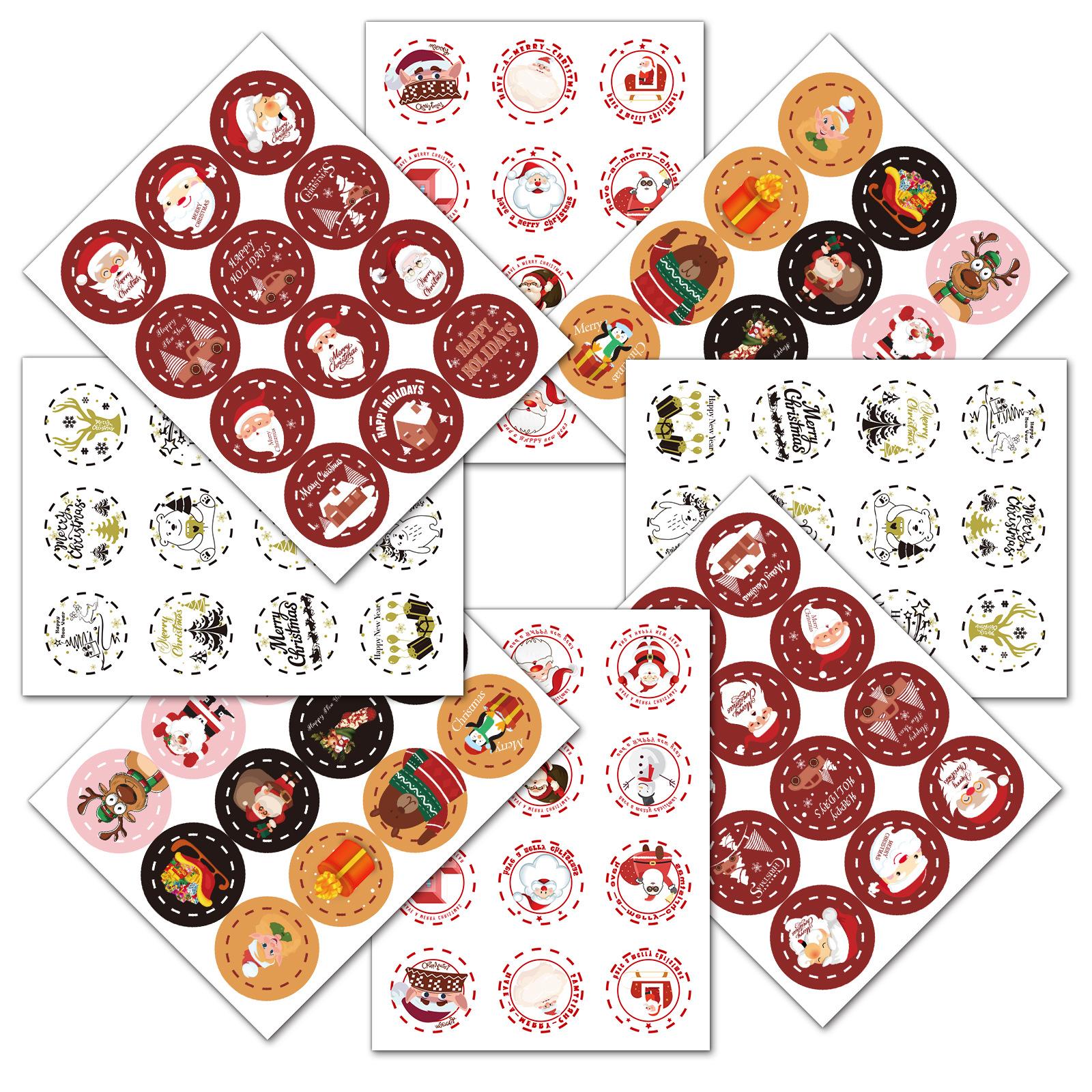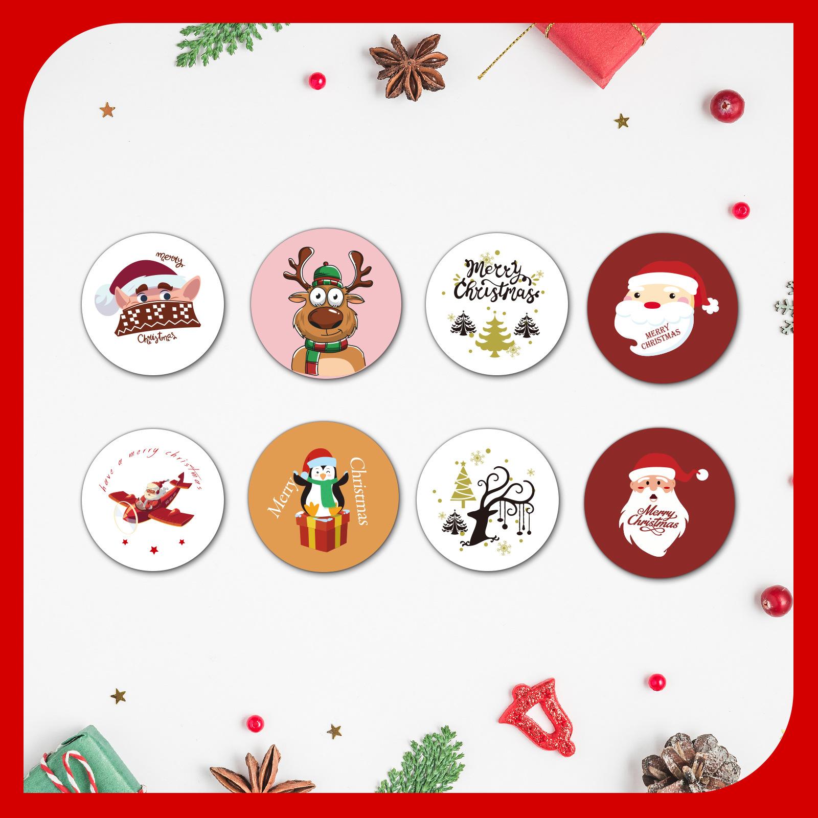 Etiqueta adhesiva redonda navideña con decoración creativa de cuenta de mano, pegatina de cuenta de mano, pegatina de cuenta de mano, decoración navideña