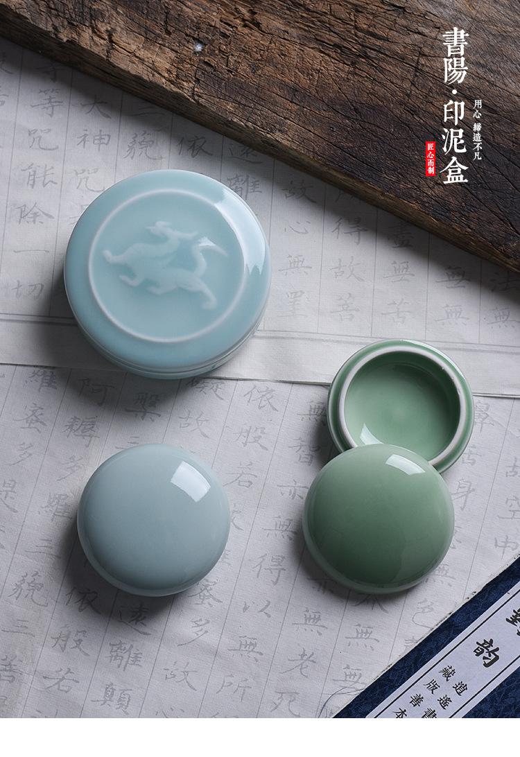 Caligrafía y pintura exquisita caja de arcilla de tinta caja de polvo estudio cuatro tesoros horno Ru con tapa piedra de tinta placa de tinta gotas de agua piedra de tinta pluma lavado
