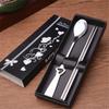 | Venta al por mayor, embalaje de tela de almohada portátil, cuchara, tenedor, palillos de acero inoxidable, juego de vajilla, juego de vajilla de regalo para picnic. |