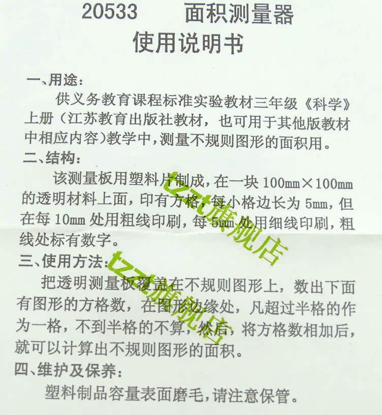 3. Uso: Cubra la tabla de medición transparente sobre la forma irregular, cuente el número de cuadrados con las formas a continuación y