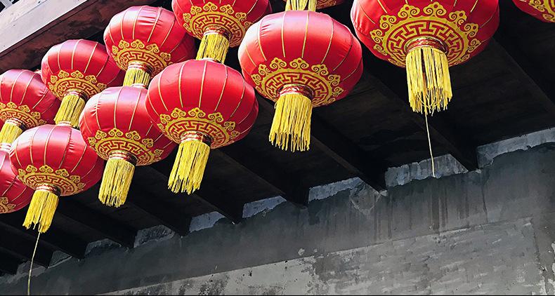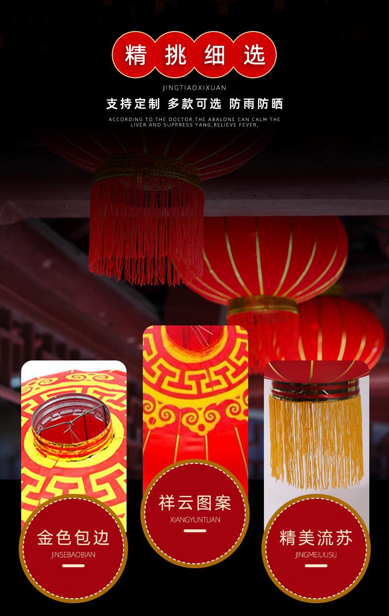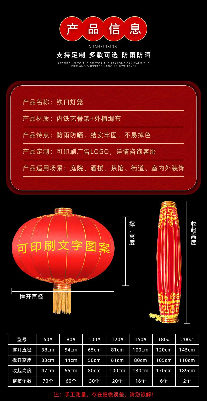 Linternas Boca de Hierro, Linternas de Flocado, Linternas de Año Nuevo y Festival de Primavera, Decoraciones Festivas, Linternas Rojas de Satén de Seda para Publicidad Exterior
