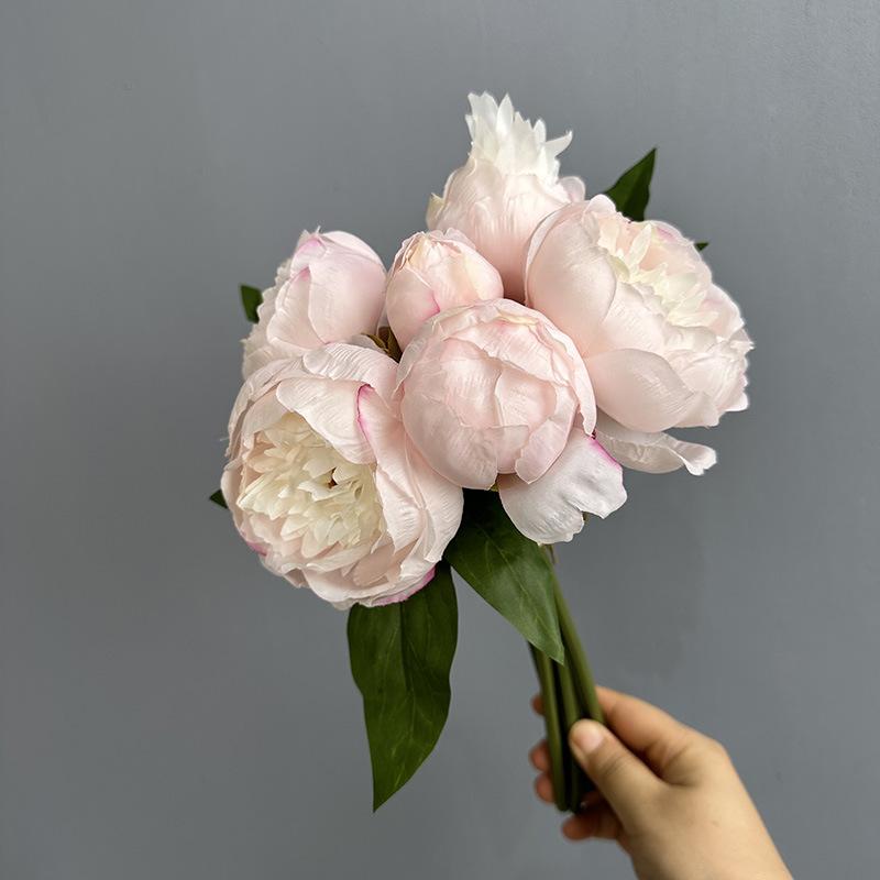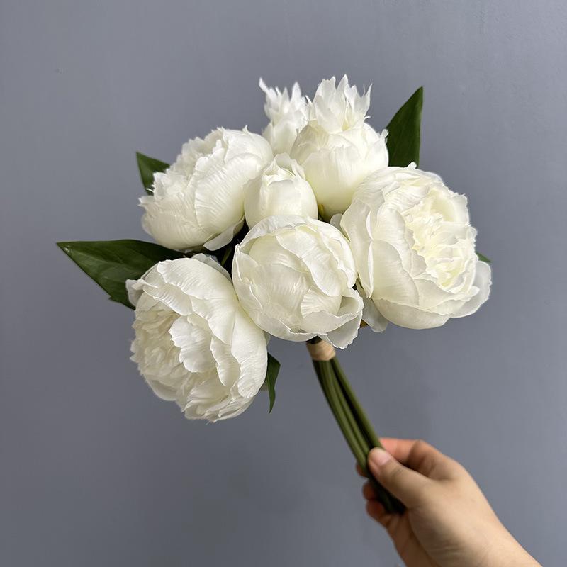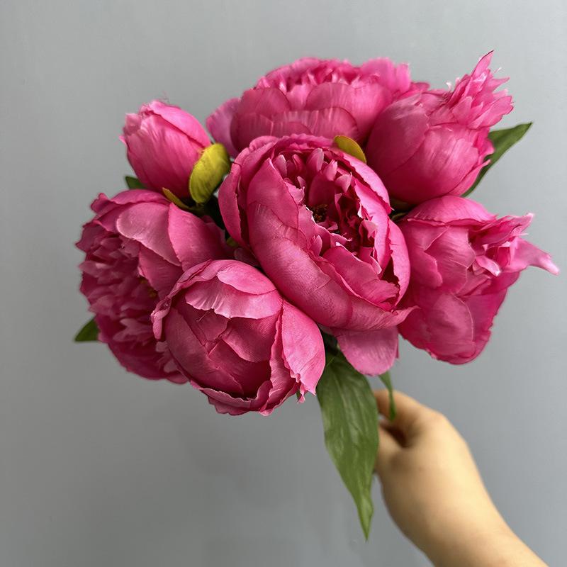 Peonía Atada a Mano Flor Artificial Estilo Europeo Decoración Adornos Sala de Estar Hogar Flor de Mano Ramo de Peonías Ramo de 7 Cabezas Flor Falsa