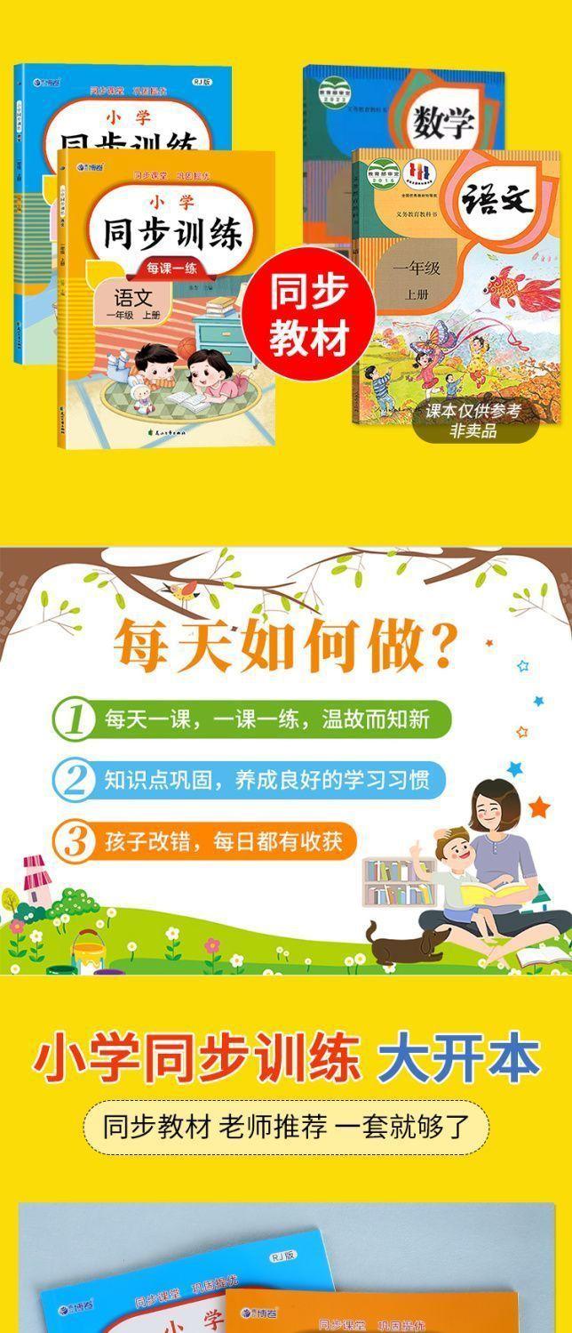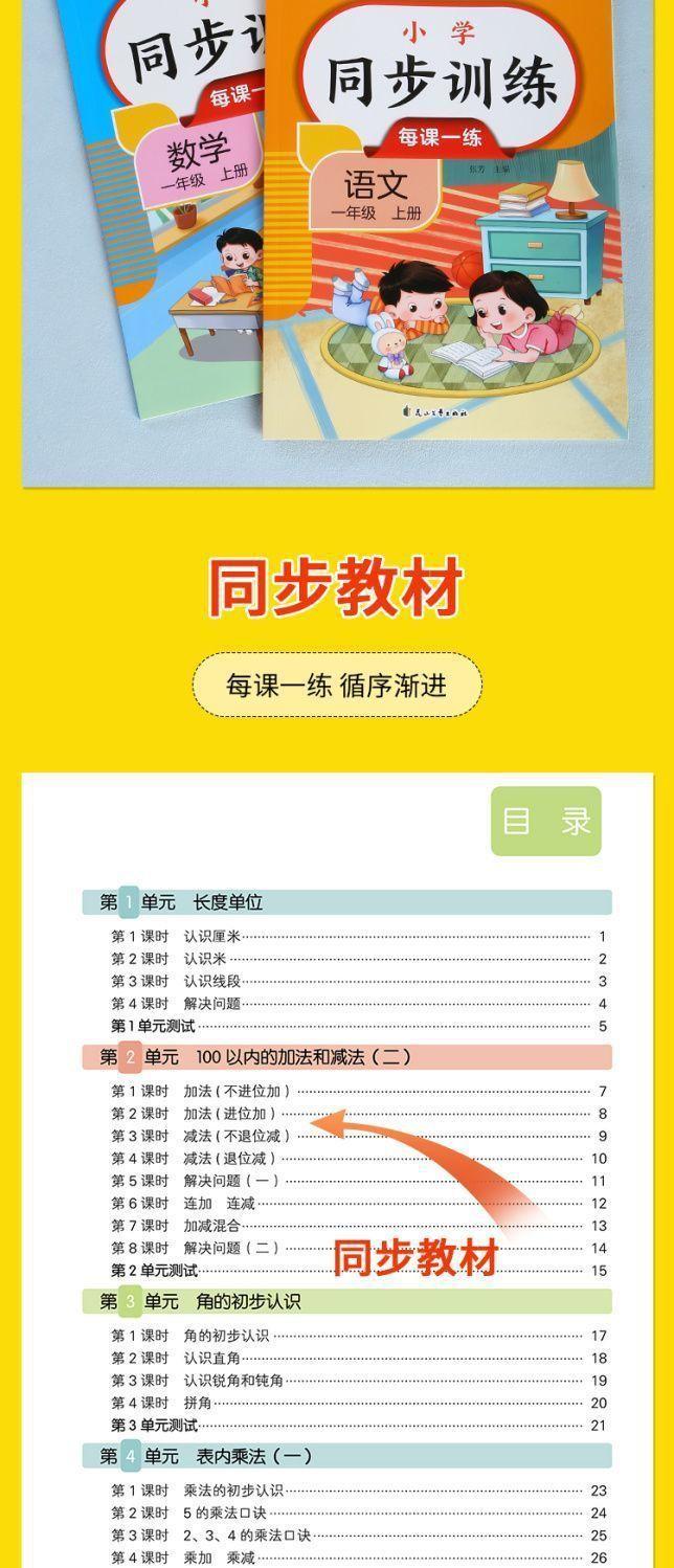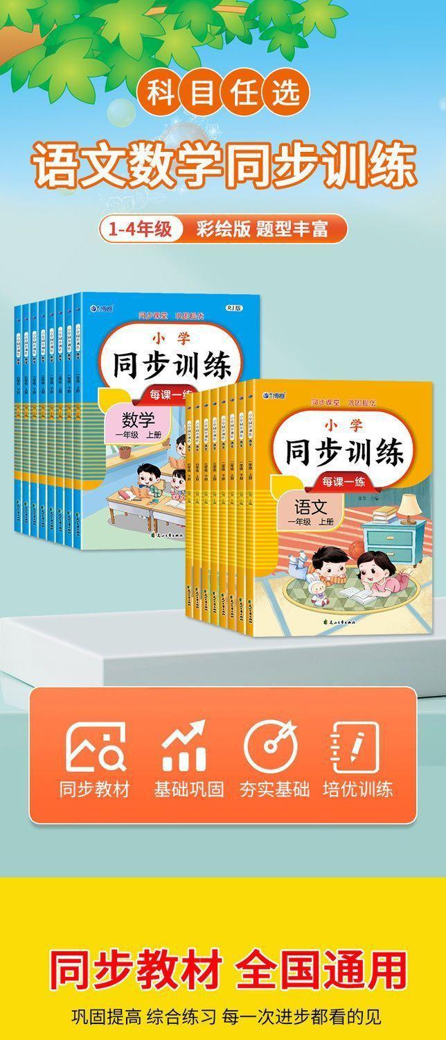 Primer grado, primer volumen, segundo volumen, capacitación sincrónica de la escuela primaria, chino y matemáticas, un conjunto completo de libros de ejercicios, una práctica para cada lección y todo el país.