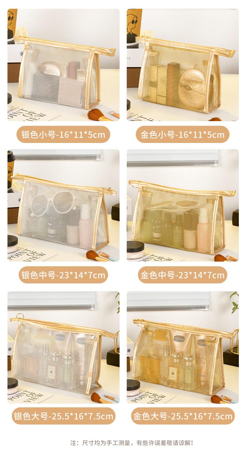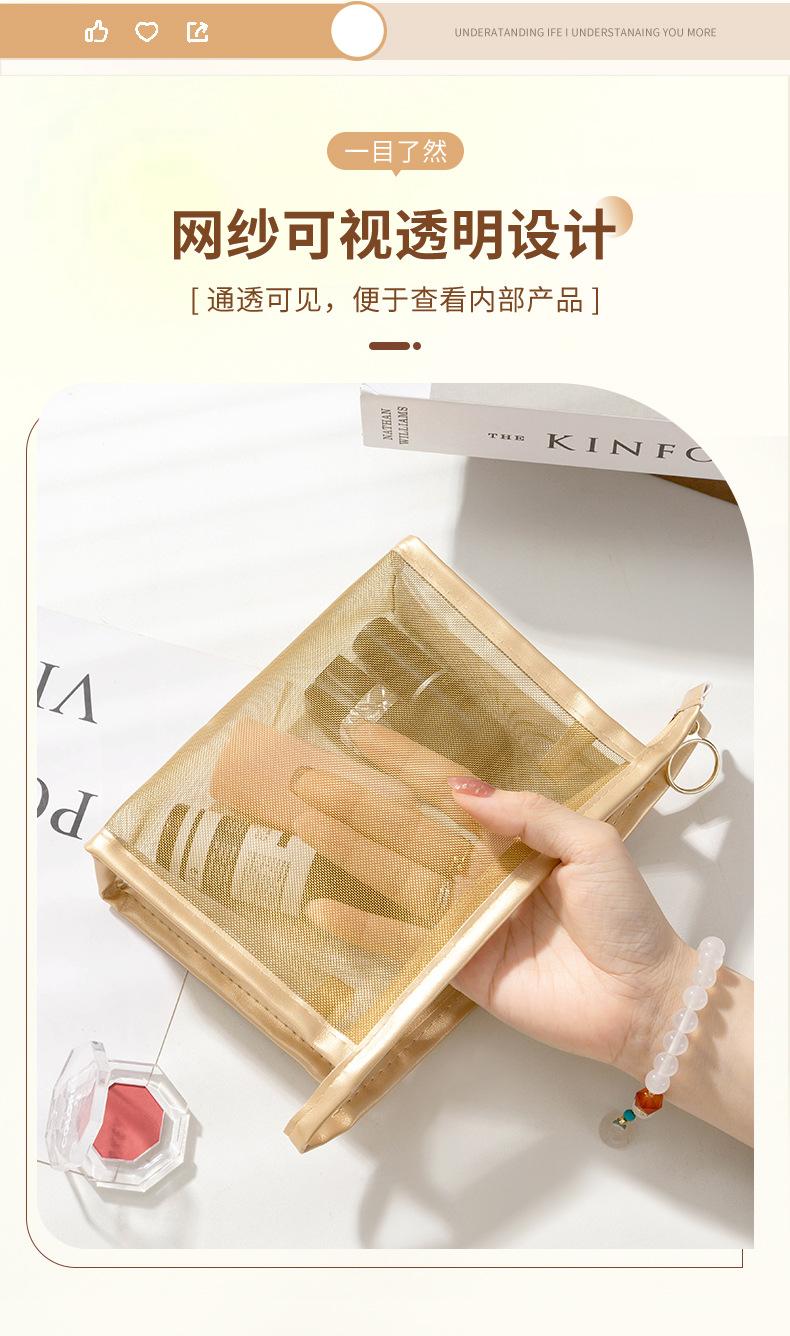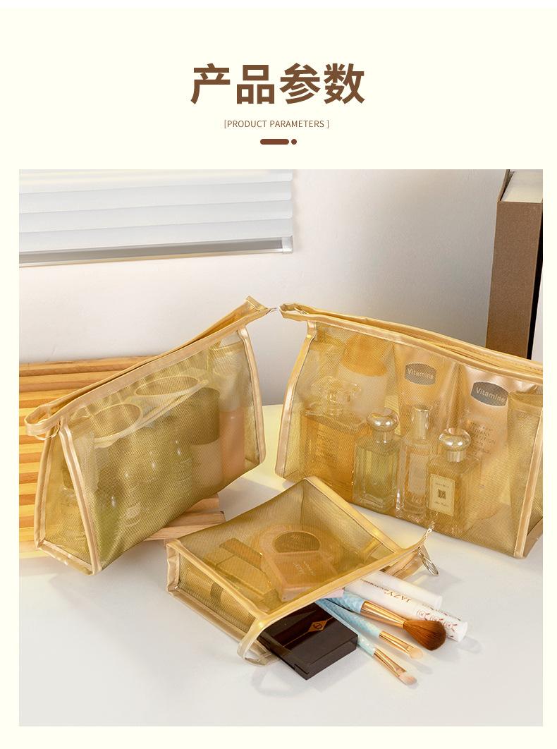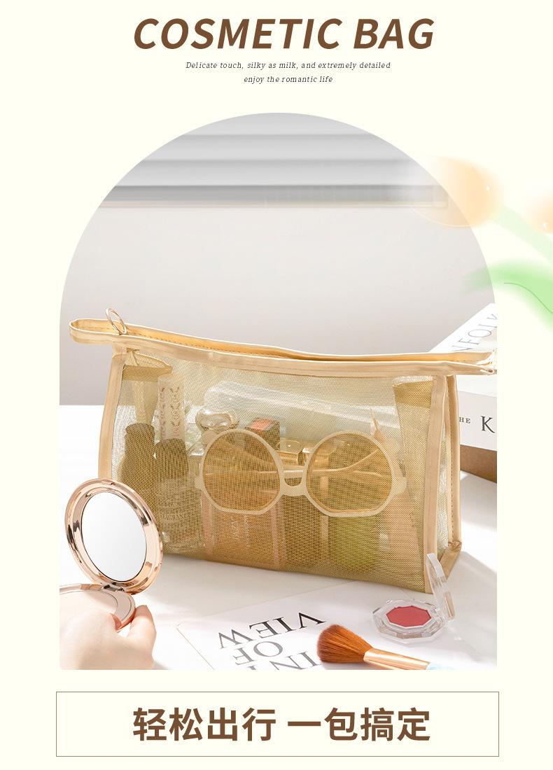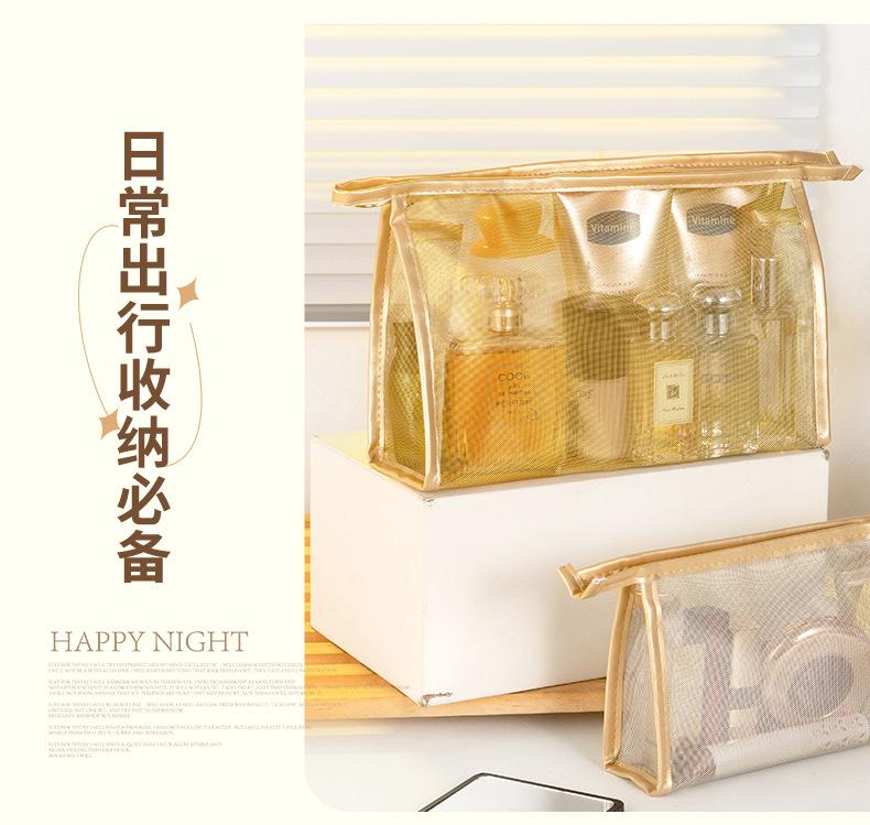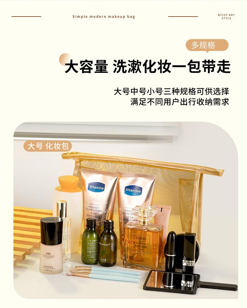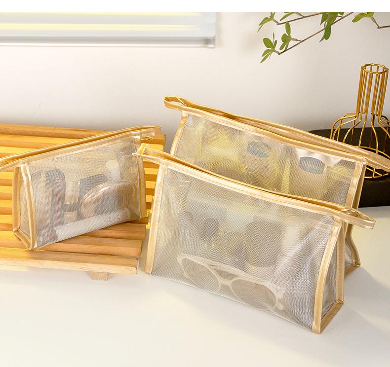 Bolsa de maquillaje de malla estéreo, bolsa de viaje multifuncional, bolsa grande para guardar pintalabios y cuidado de la piel, bolsa de cosméticos dorada.