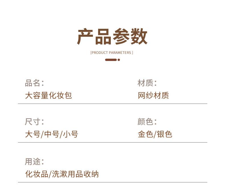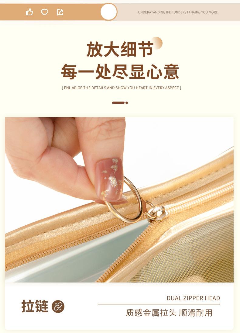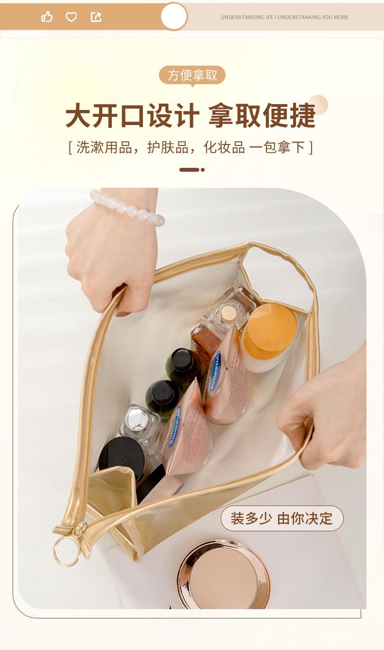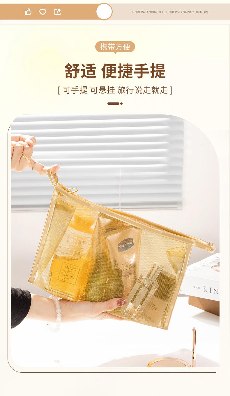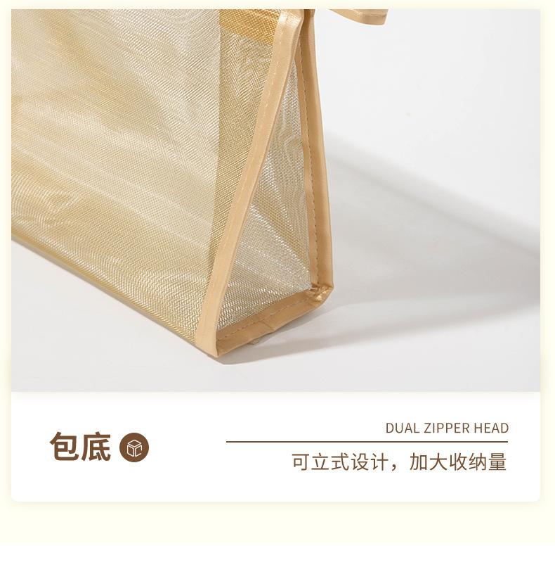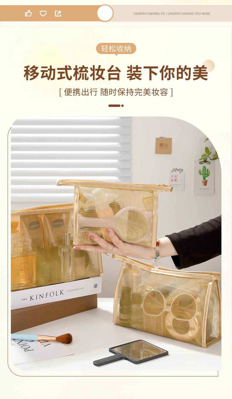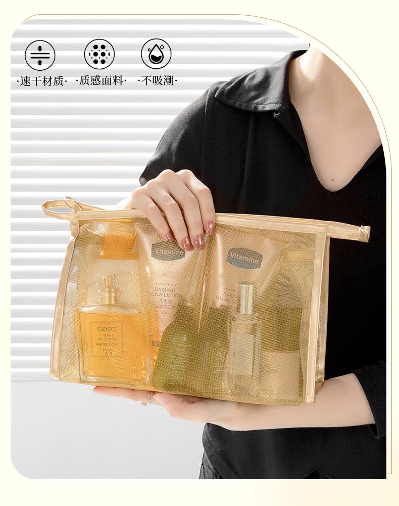 Bolsa de maquillaje de malla estéreo, bolsa de viaje multifuncional, bolsa grande para guardar pintalabios y cuidado de la piel, bolsa de cosméticos dorada.
