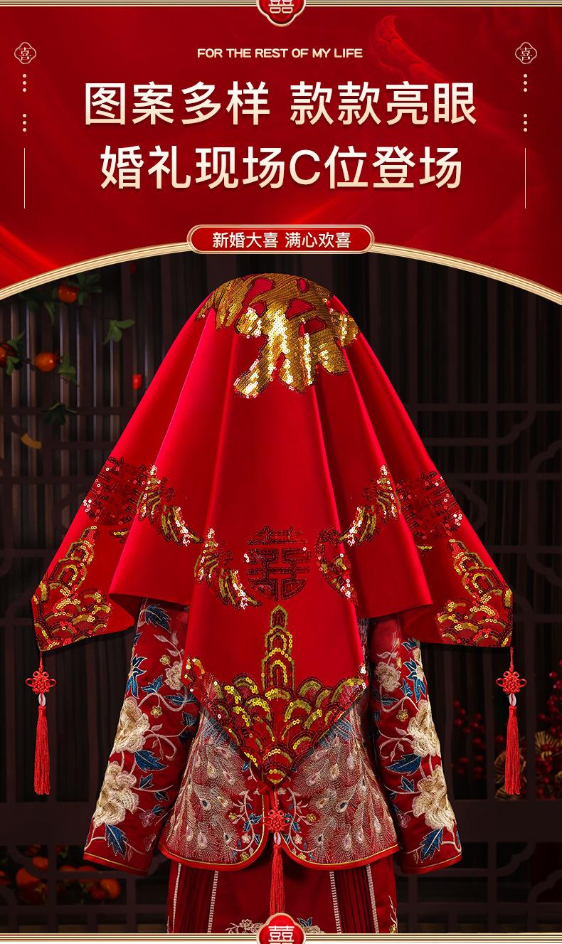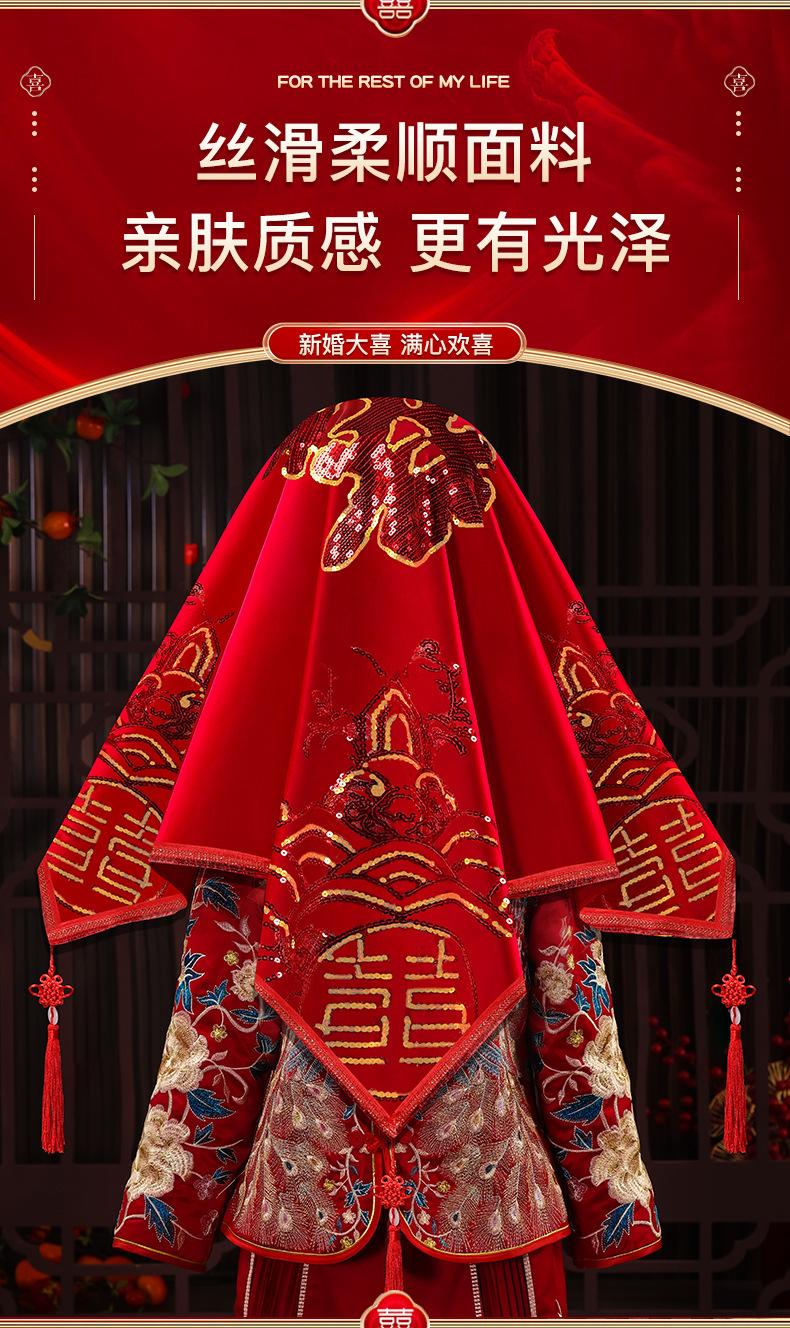 Compra Velo Rojo Novia Boda Estilo Chino Velo de Boda de Alta Gama Tocado Xiuhe Colección de Suministros para Boda al por mayor en Joom.pro