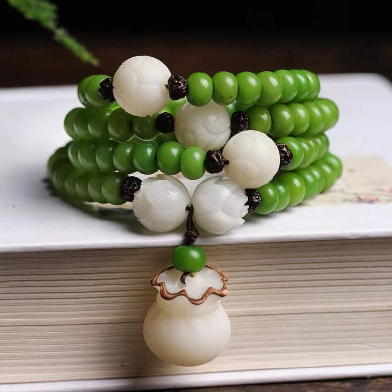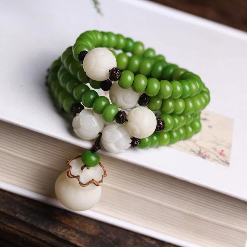 Pulsera Bodhi verde, jade azul, raíz de Bodhi, loto, bolsa de dinero, 108, cadena de suéter DIY, pulsera de juguete para hombres y mujeres, decoración