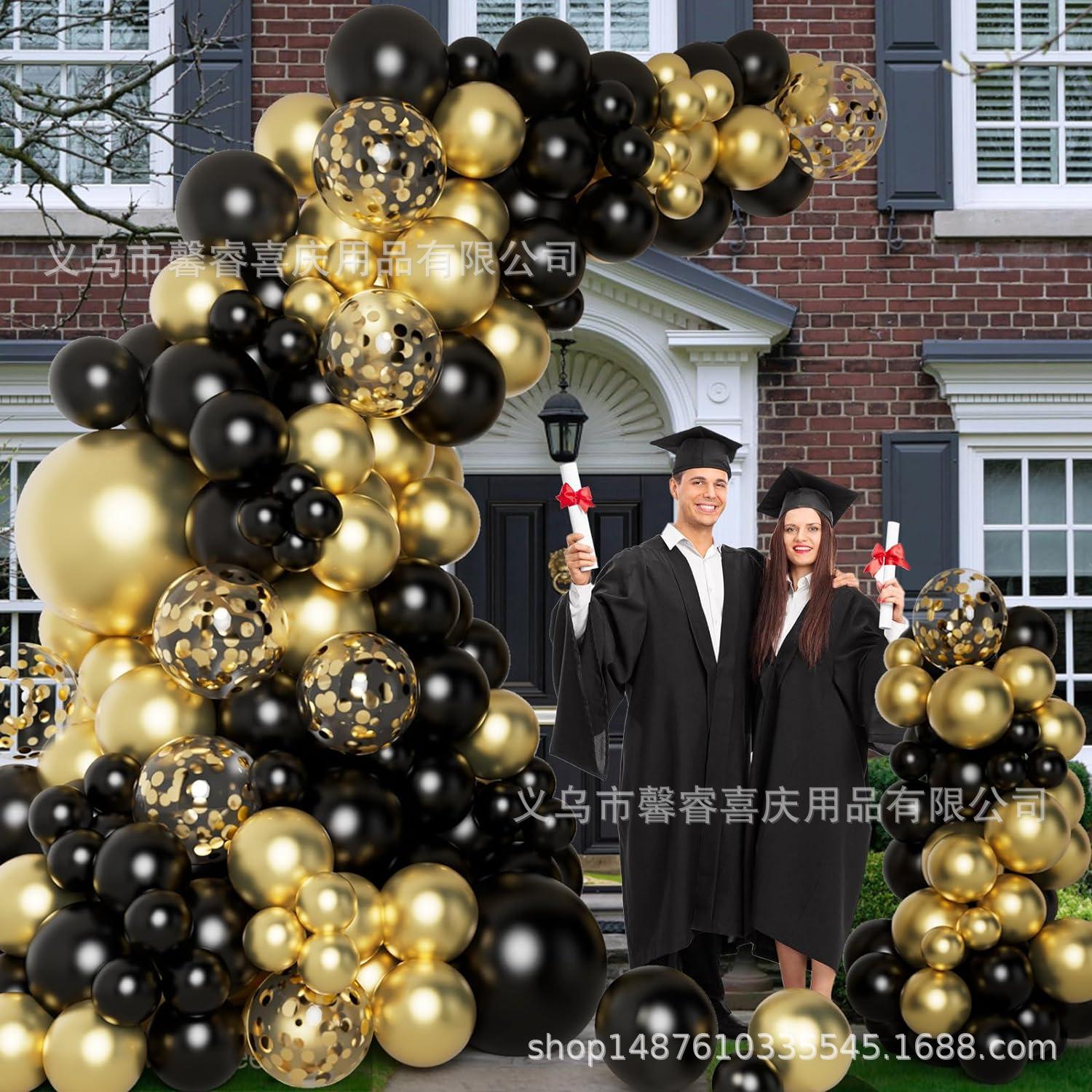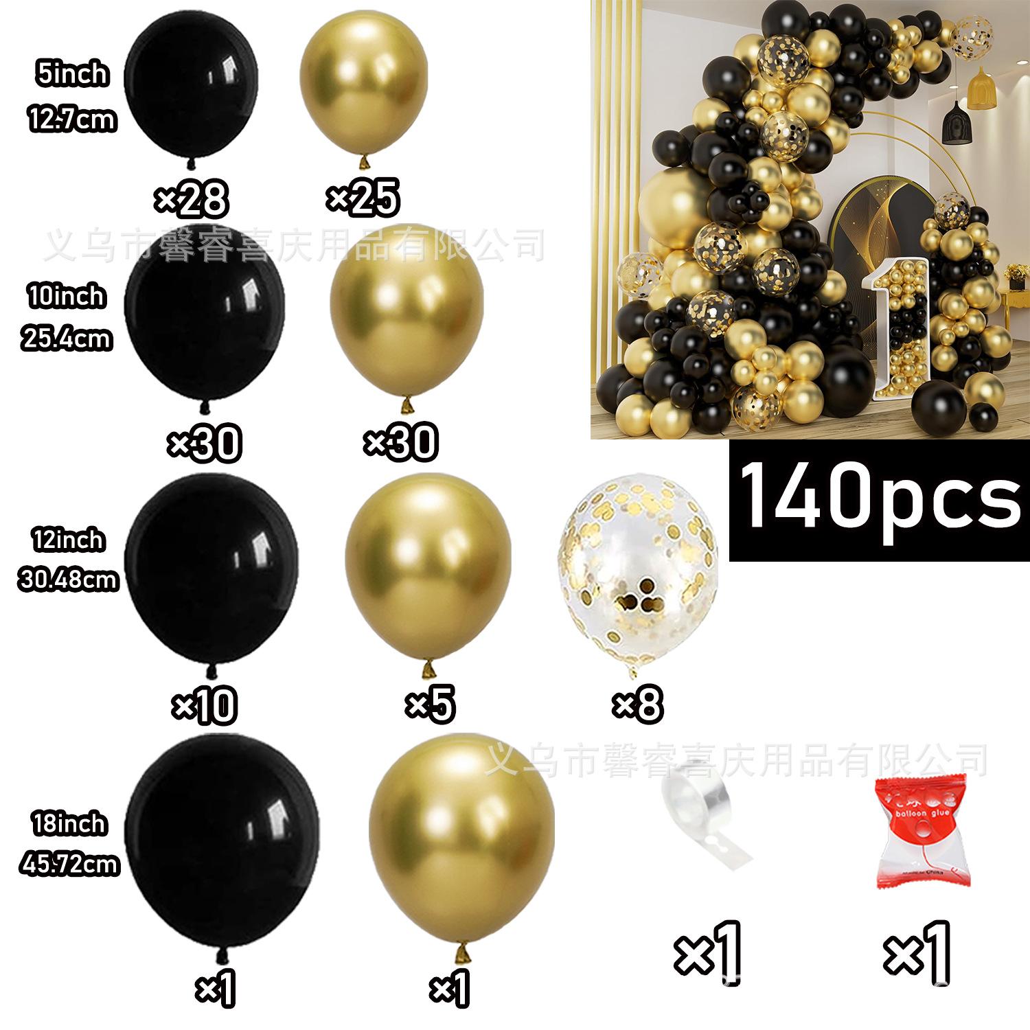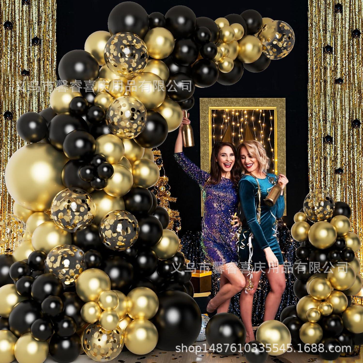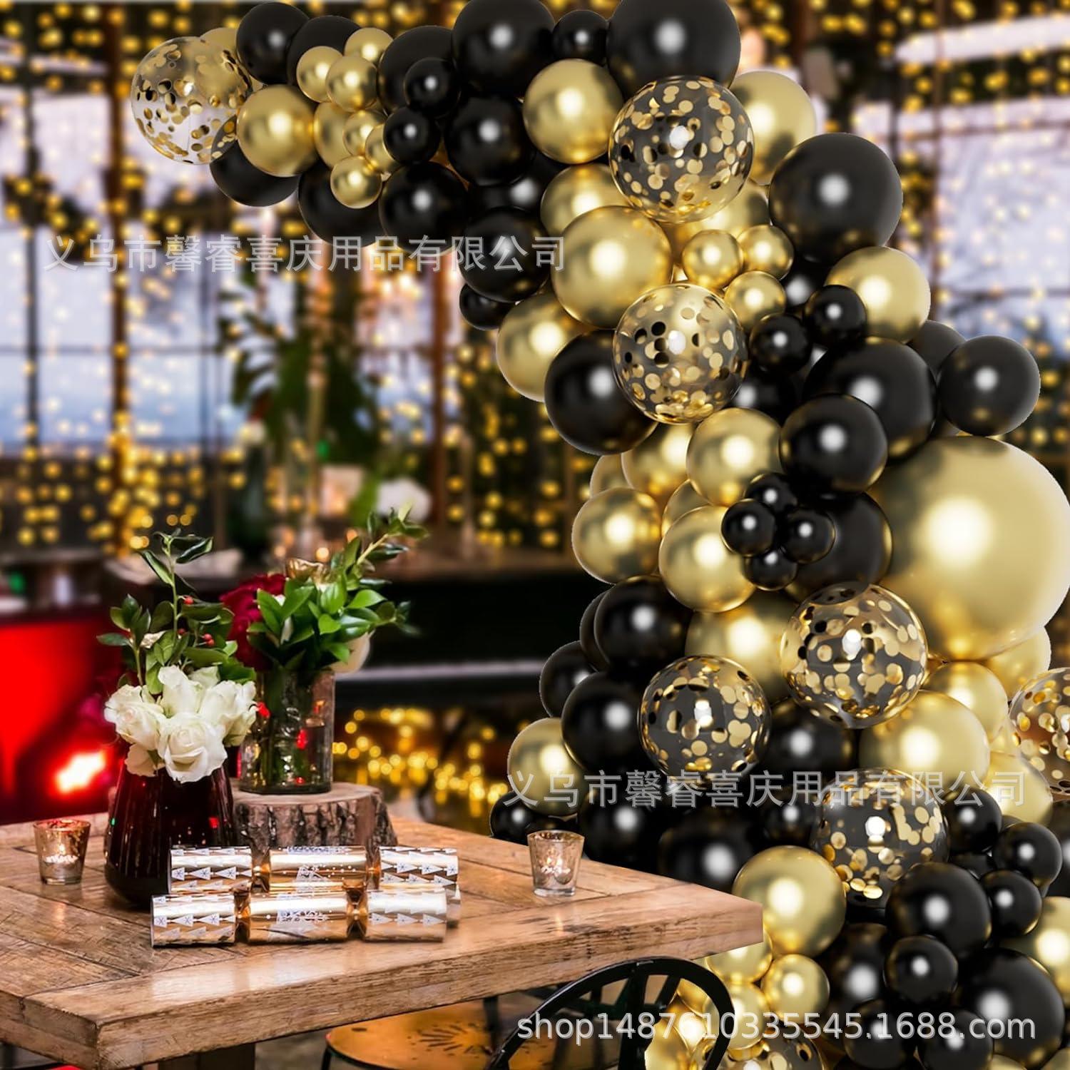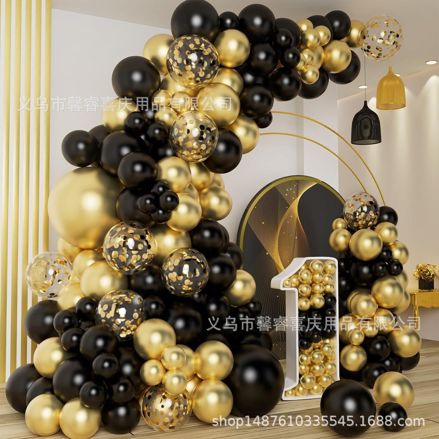 Cadena de globos de oro negro transfronterizos, traje de confeti dorado, decoración para fiestas de cumpleaños y graduación.