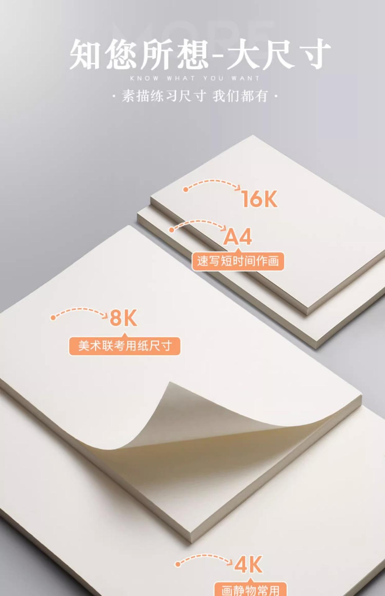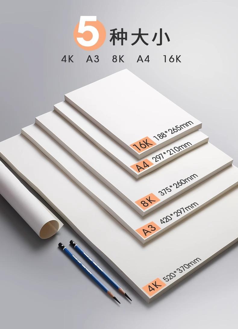 Papel de dibujo al por mayor de fábrica, papel de plomo 4K, papel de acuarela 8K, papel de pintura artística de 160 g, papel gouache A4, papel de marca A3