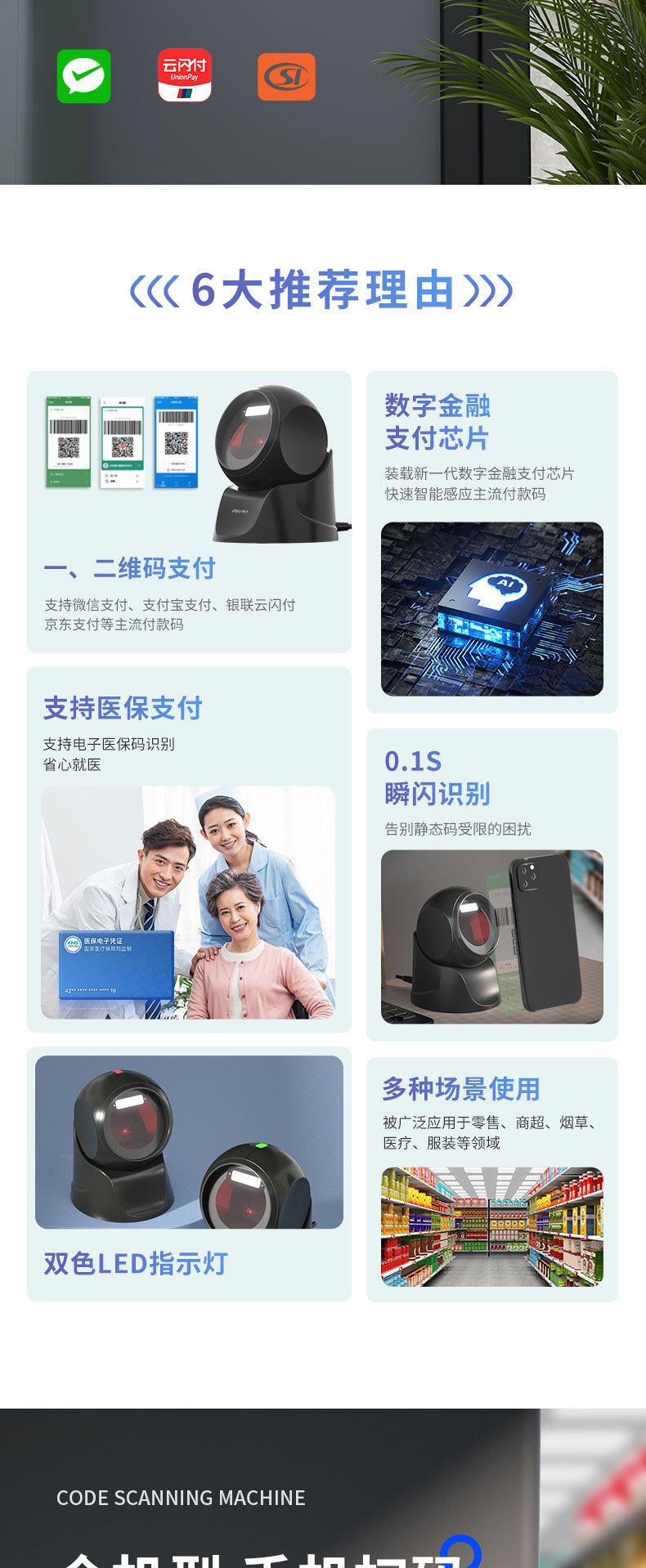 Escáner de código Deli 14963, plataforma de escaneo láser, escáner de código de barras para caja registradora de supermercado, centro comercial, pistola de escaneo, pistola de escaneo de reconocimiento de código de barras