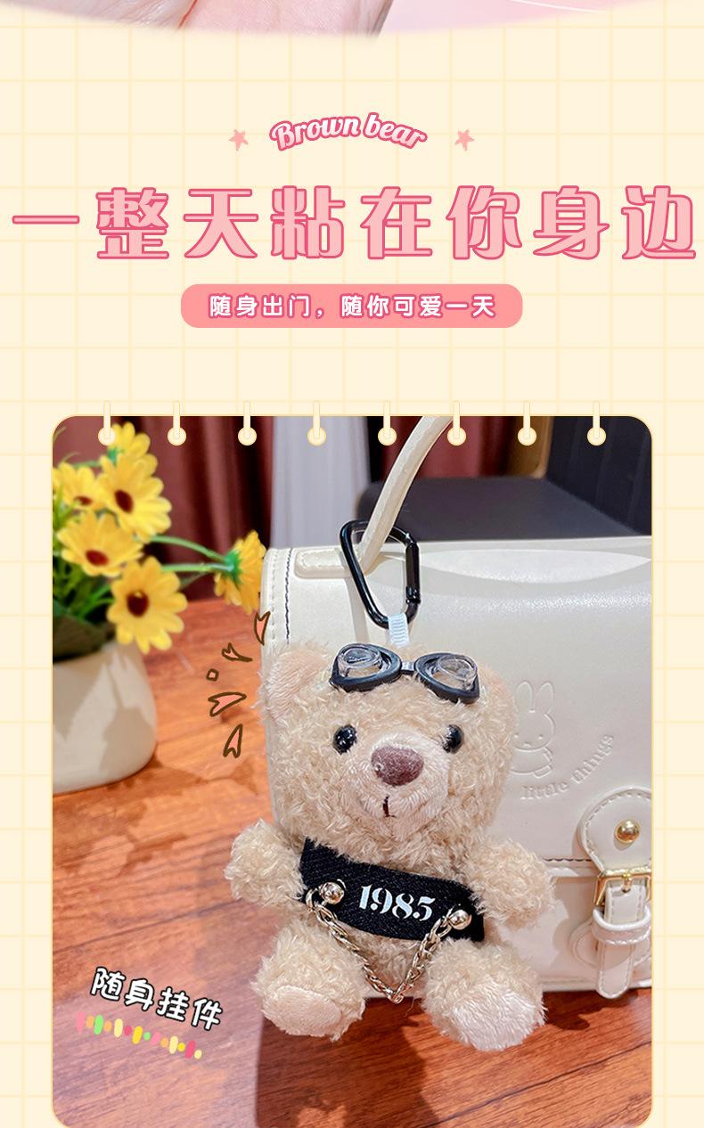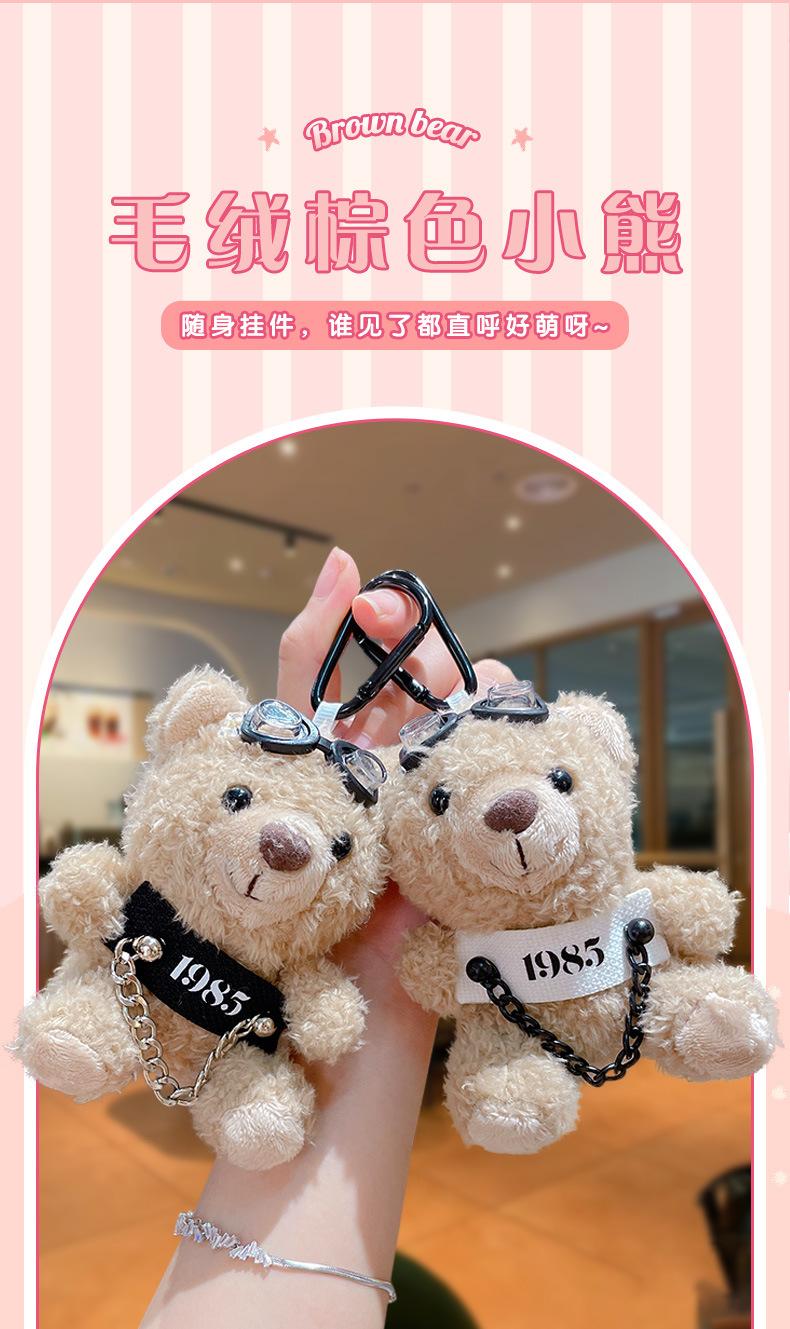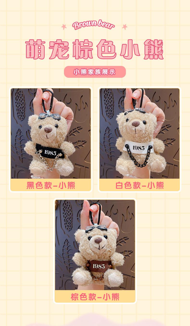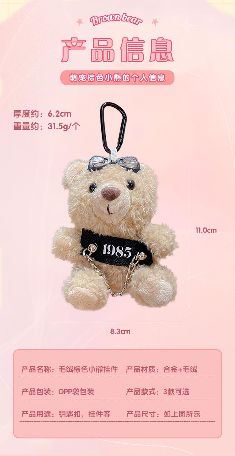 Plush brown bear pendant-white, Plush brown bear pendant-black, Plush brown bear pendant-brown, Brown bear dol...