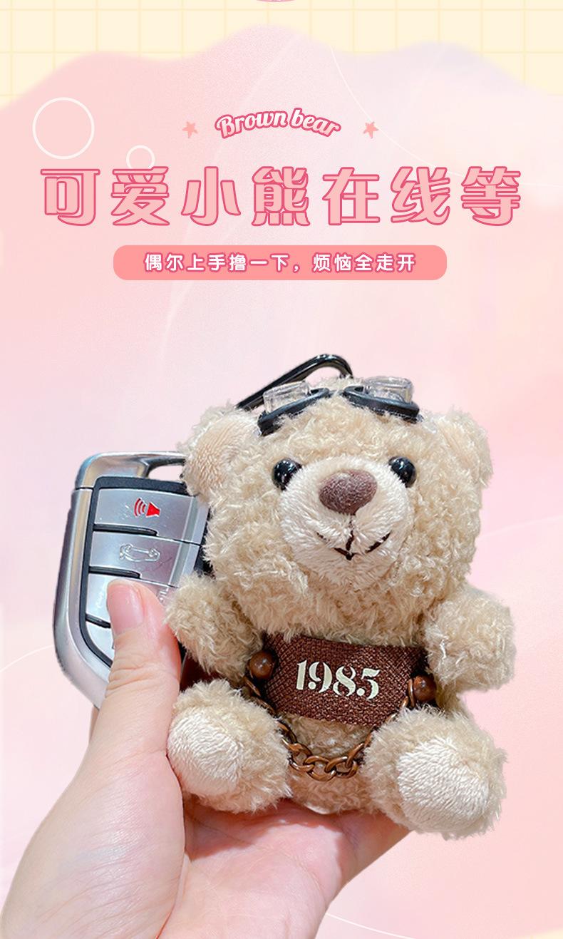 LLavero de oso de peluche de dibujos animados creativo, bonito llavero colgante para bolso femenino, pequeño regalo al por mayor