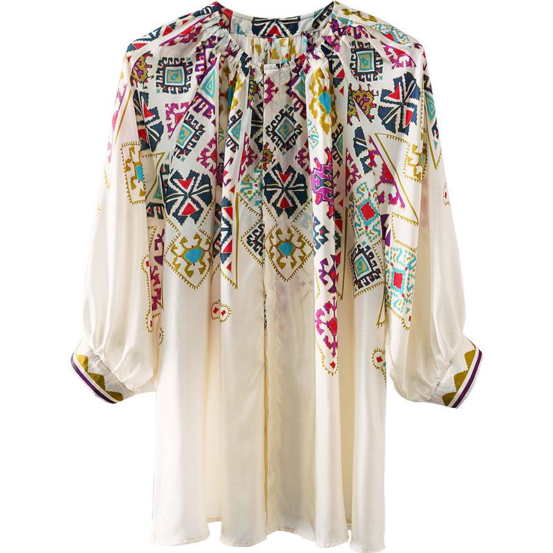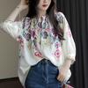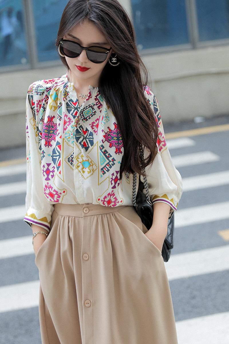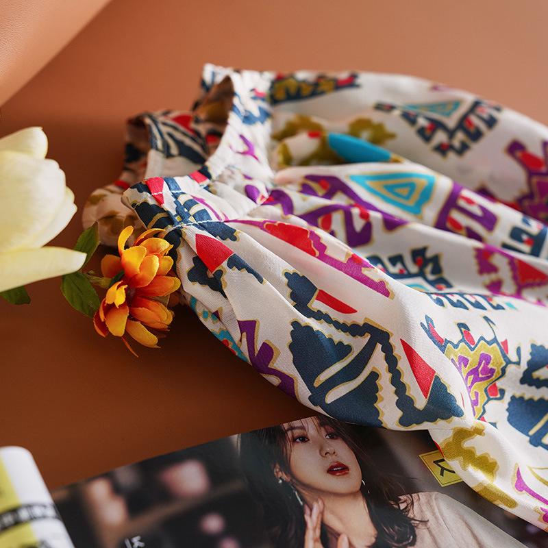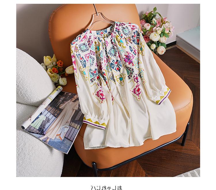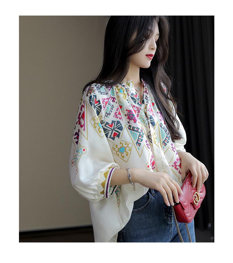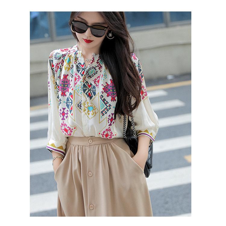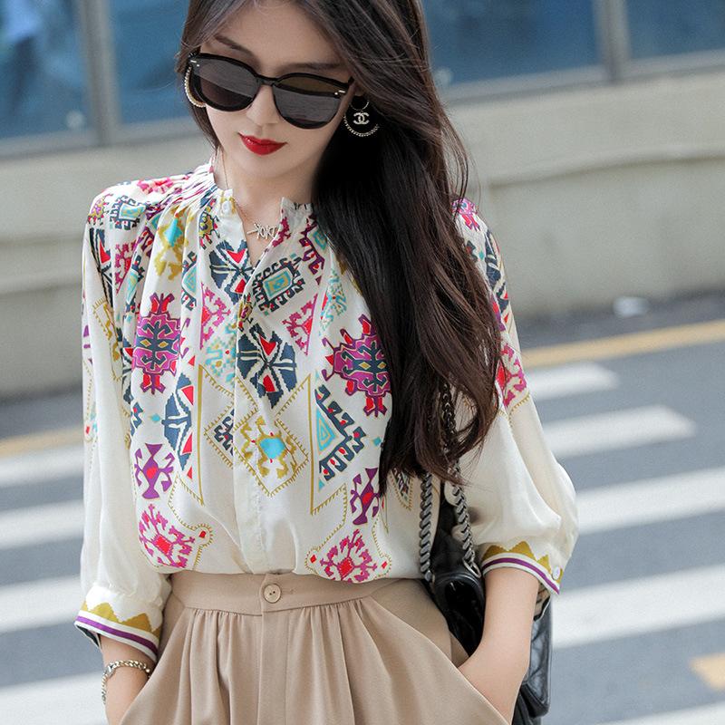 Compra Camisa de gasa para mujer manga tres cuartos verano 2022 nueva camisa pequeña diseño sentido nicho para mujer estampado top que cubre el abdomen al por mayor en Joom.pro