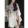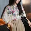 Camisa de gasa para mujer manga tres cuartos verano 2022 nueva camisa pequeña diseño sentido nicho para mujer estampado top que cubre el abdomen
