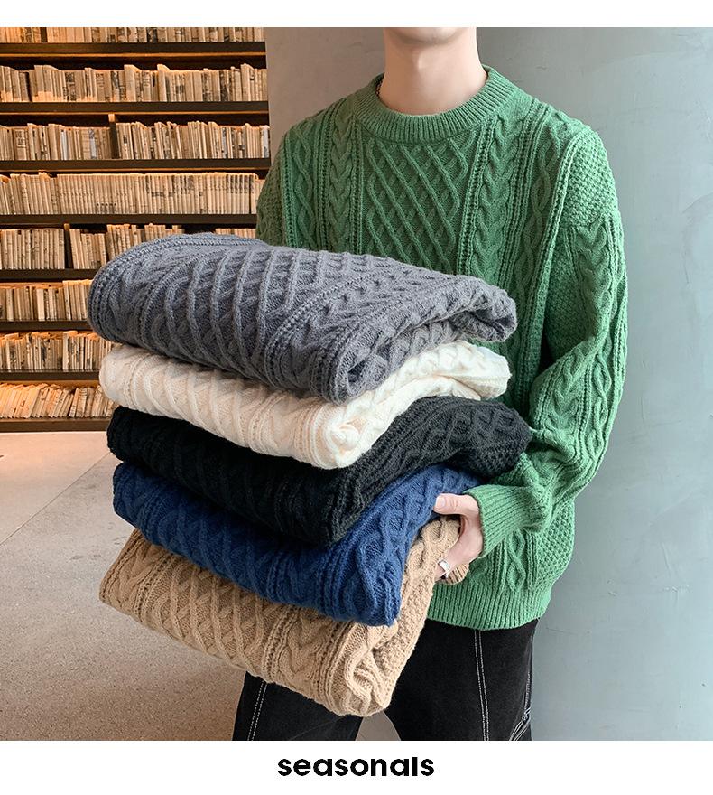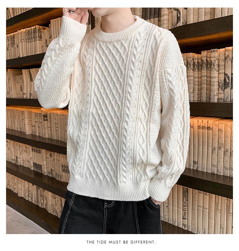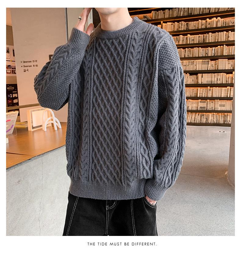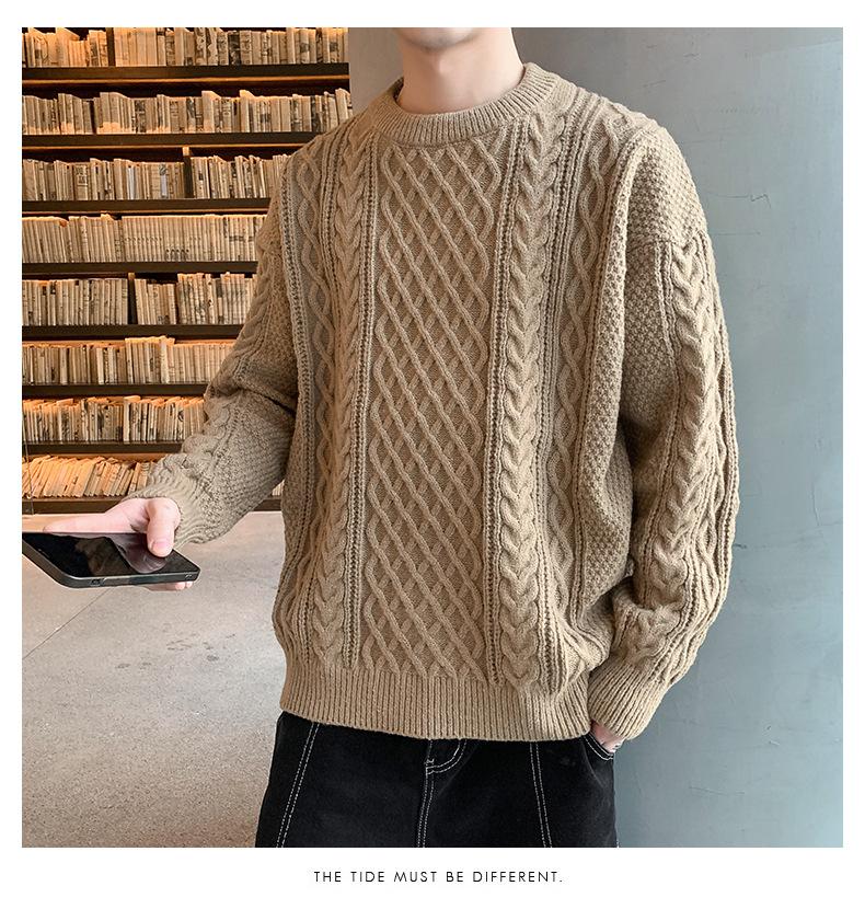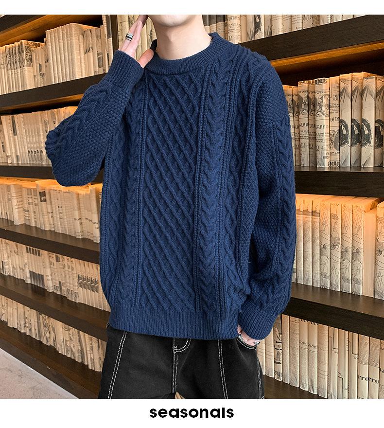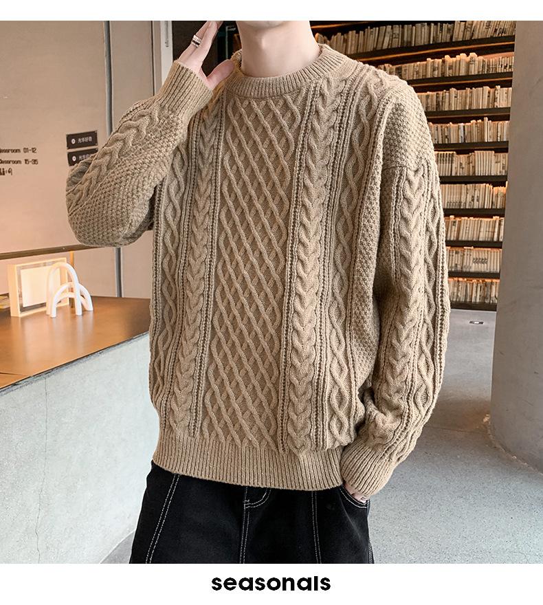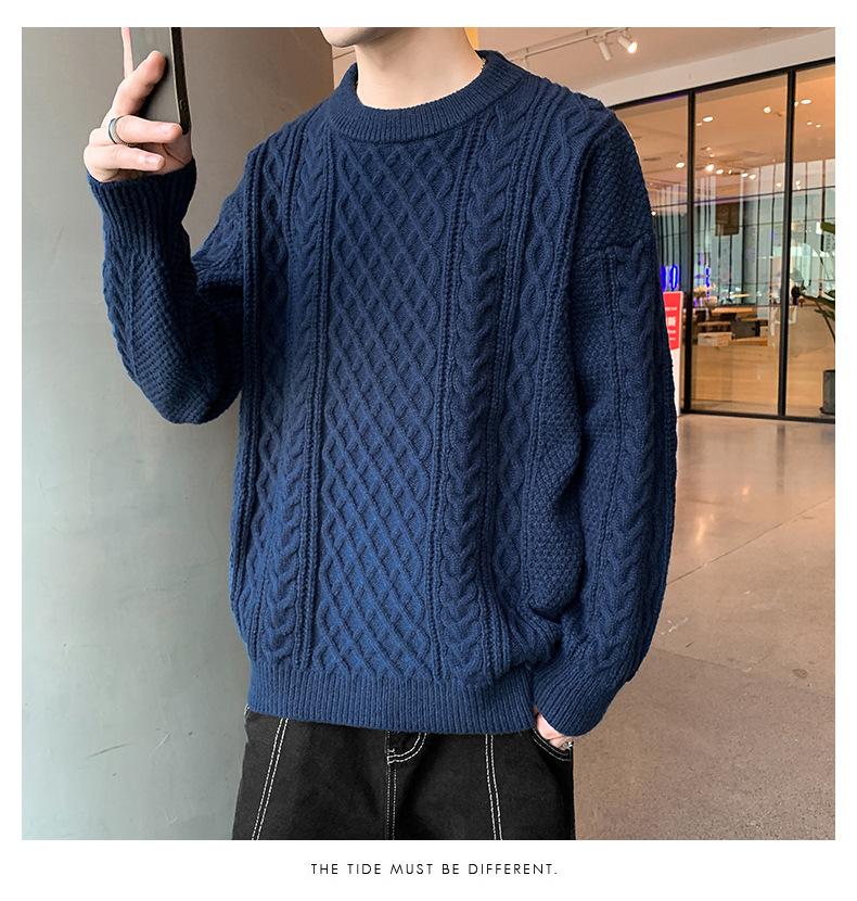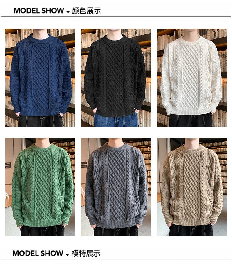Suéter de cuello redondo informal de marca de moda de otoño e invierno para hombre, suéter de base gruesa para hombre, cálido