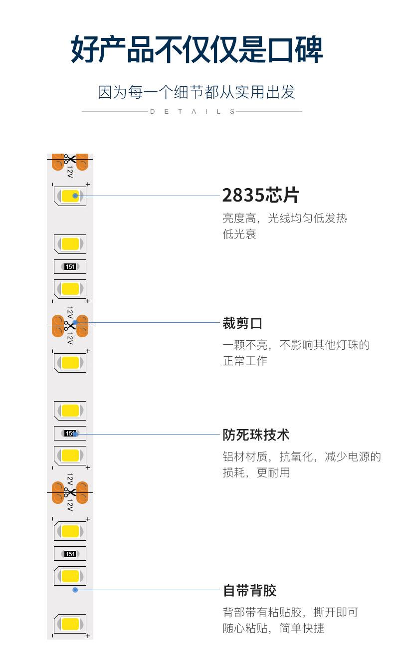 Neutral light/4000k 12v2835-120 light double plate casing with adhesive backing