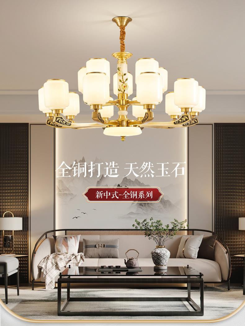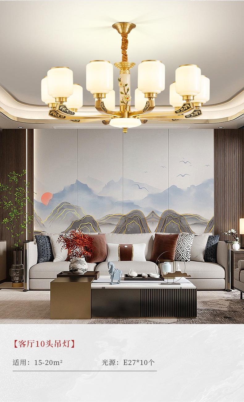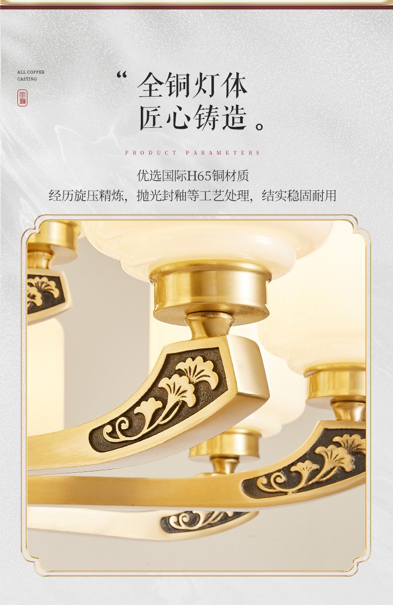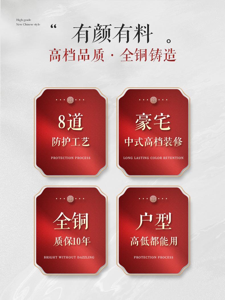 Lámpara de araña de cobre de estilo chino, lámpara principal de sala de estar, lámpara de comedor minimalista moderna, lámpara de dormitorio de estilo chino, lámpara de salón de villa al por mayor