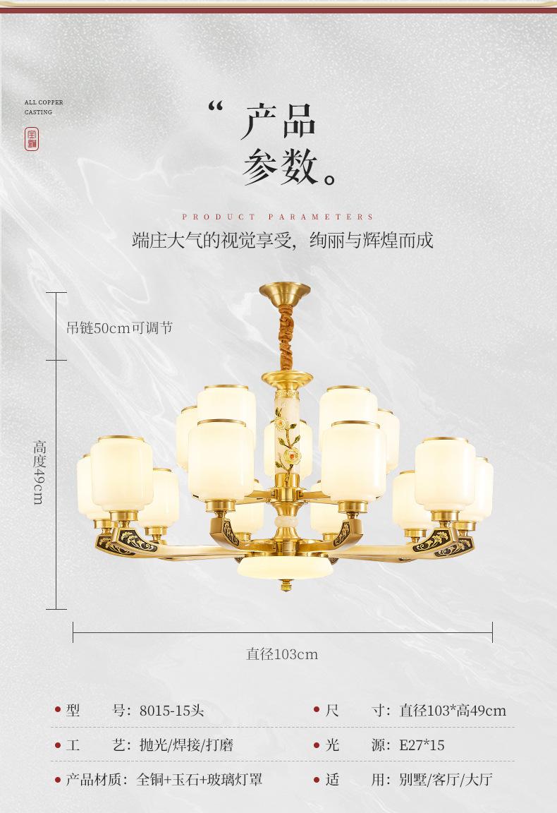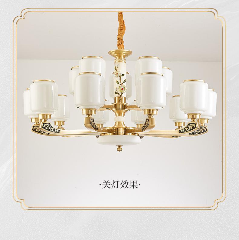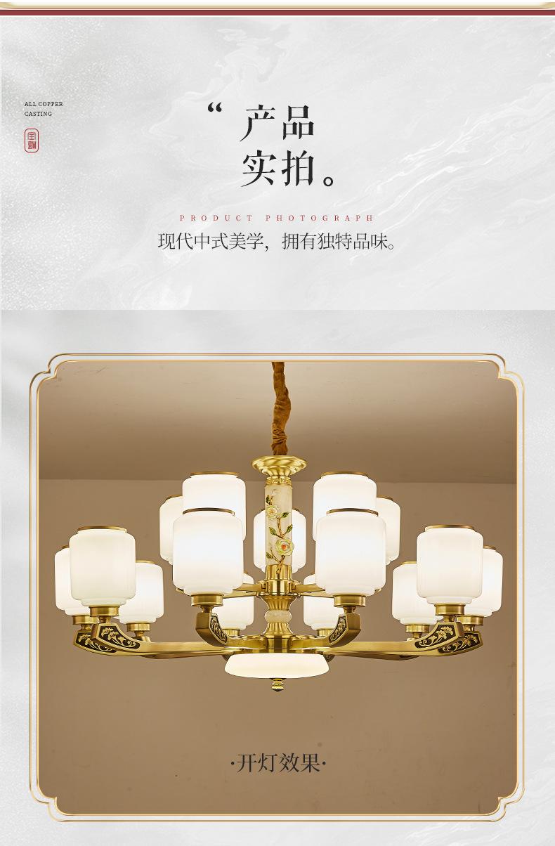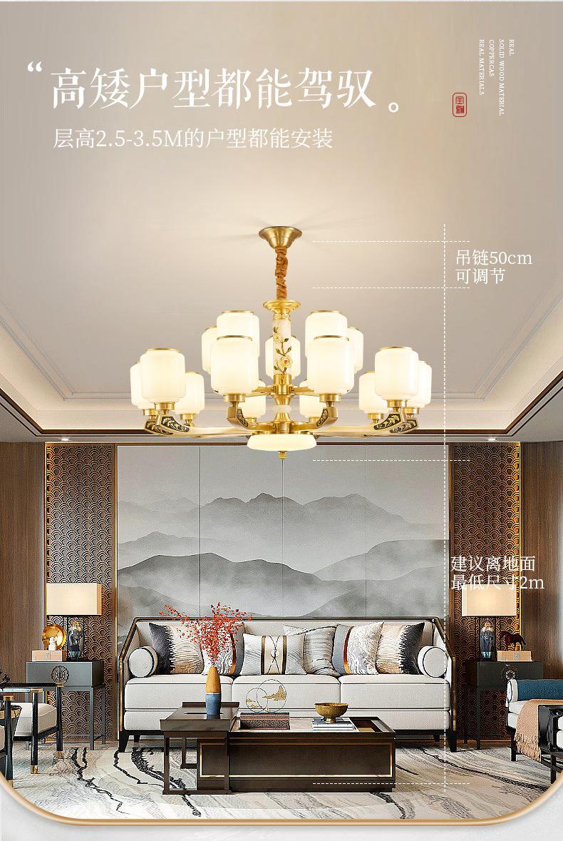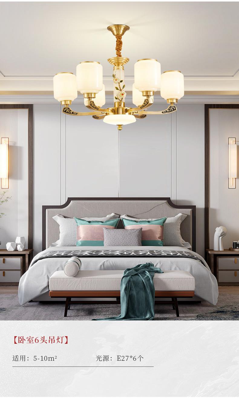 Lámpara de araña de cobre de estilo chino, lámpara principal de sala de estar, lámpara de comedor minimalista moderna, lámpara de dormitorio de estilo chino, lámpara de salón de villa al por mayor
