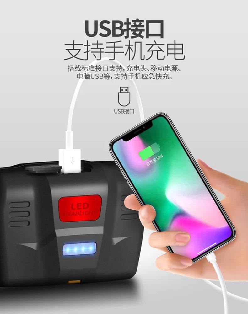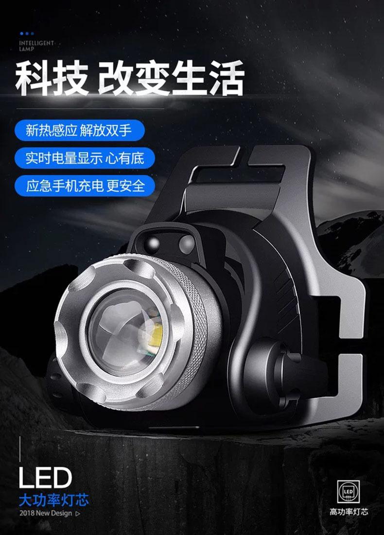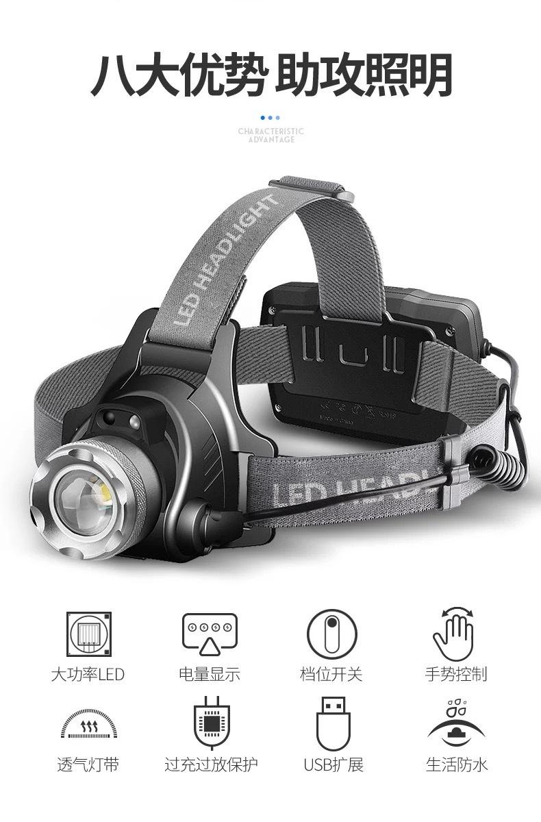 Compra Faro USB Zoom de Alta Luminosidad Transfronterizo Luz Fuerte Recargable Montado en la Cabeza Sensor Largo Alcance Exterior Led Pesca Nocturna Lámpara de Minero Linterna al por mayor en Joom.pro