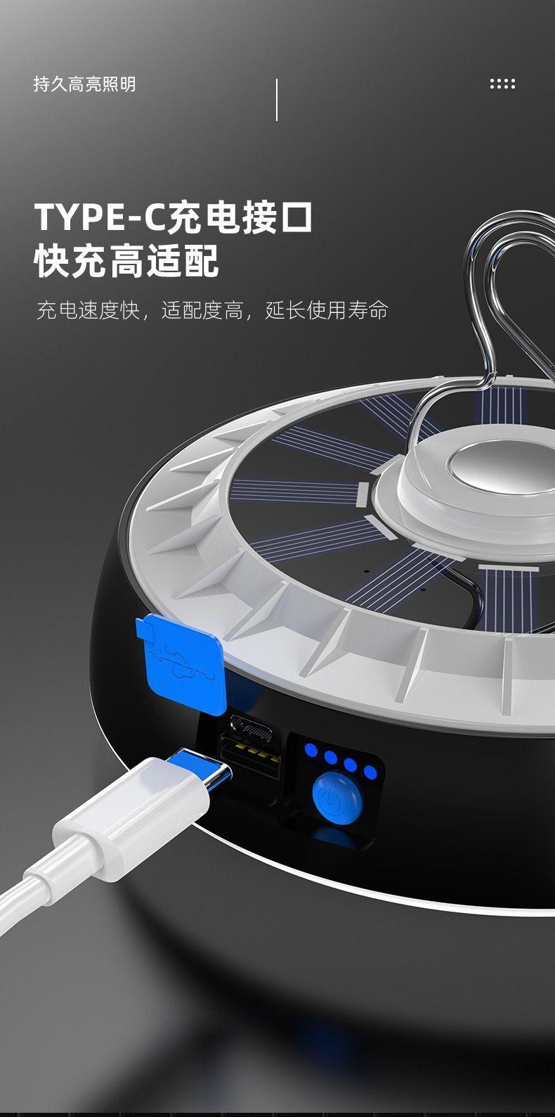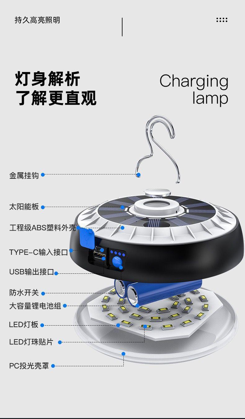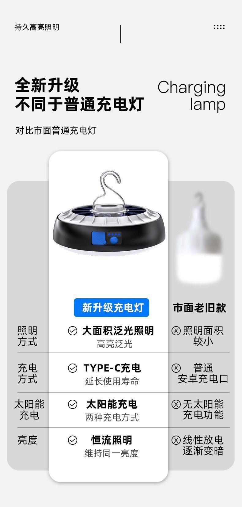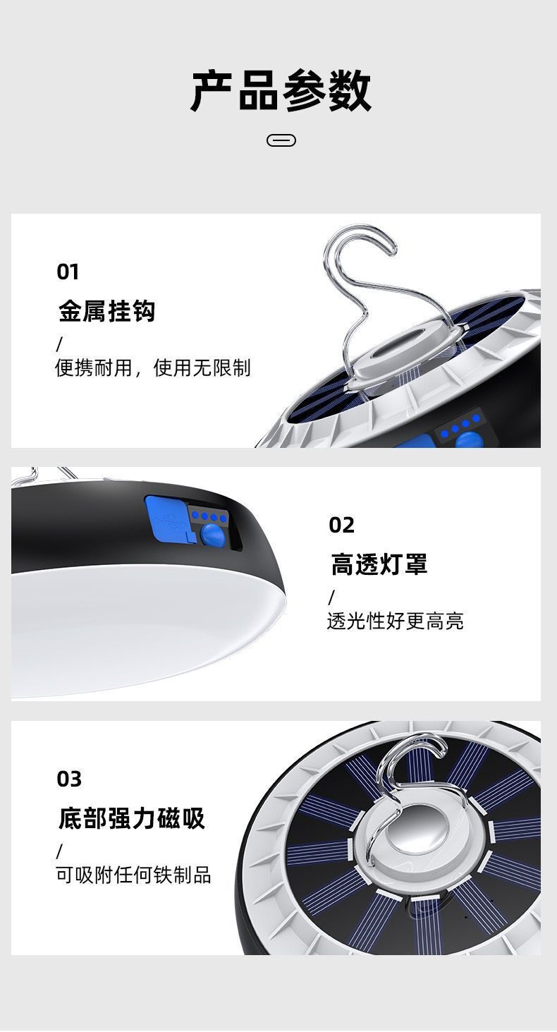 Luz solar recargable, doble fuente de luz, luz para acampar, puesto de mercado nocturno, iluminación de emergencia, luz magnética colgante para tienda de campaña.