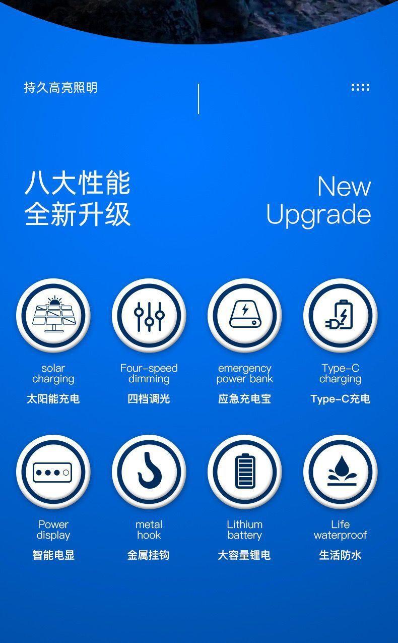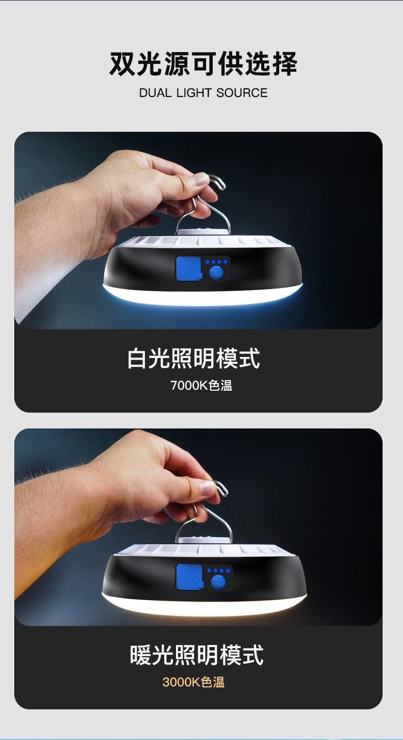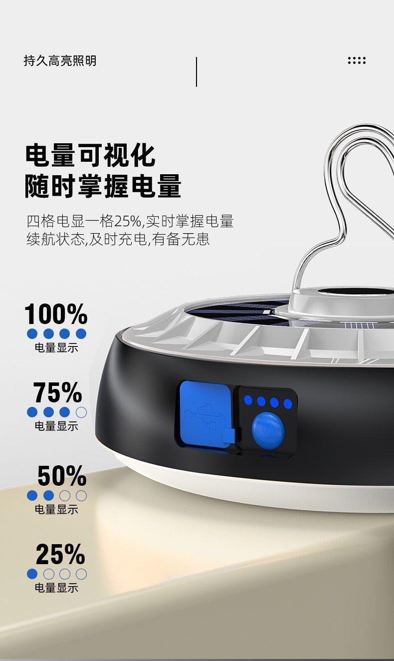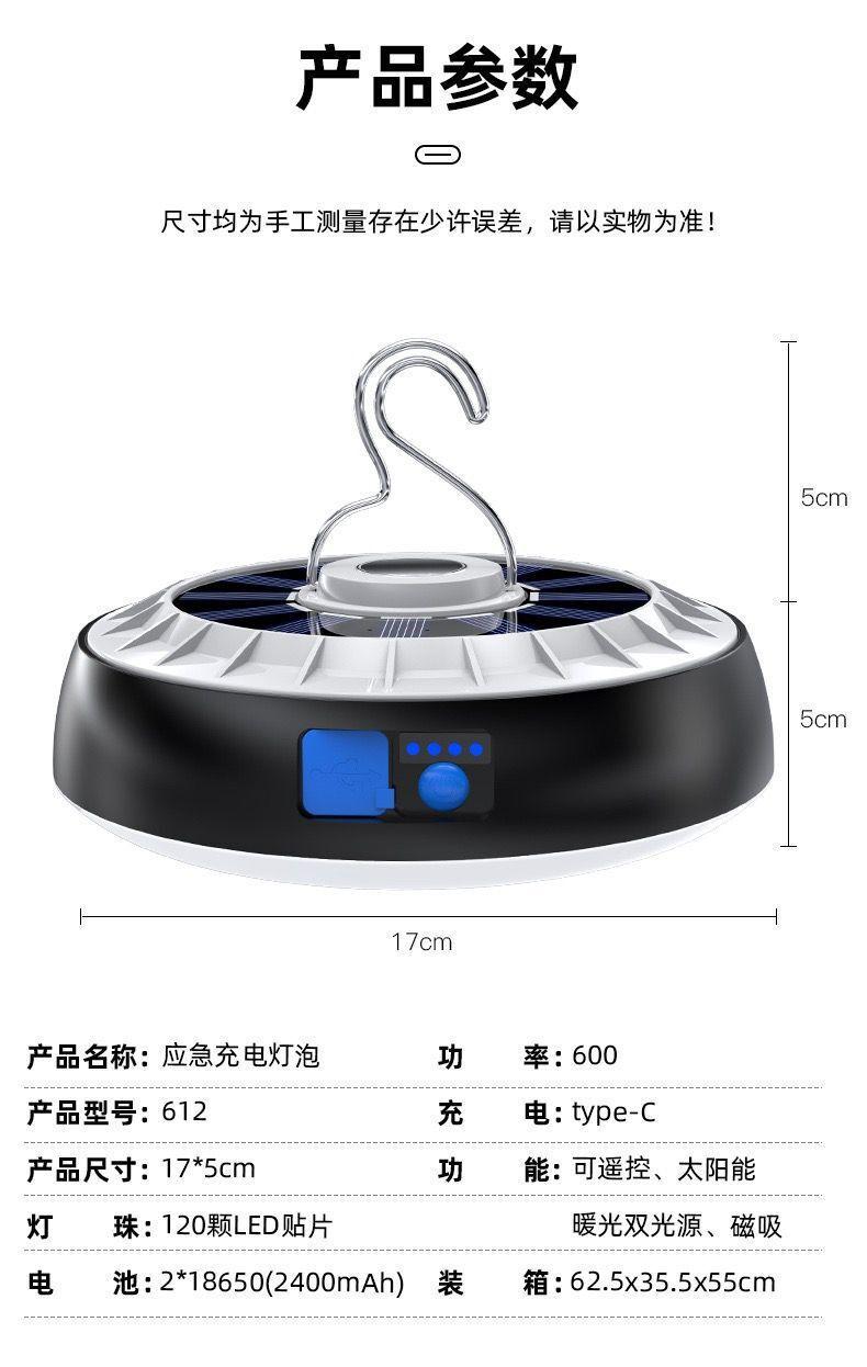 Luz solar recargable, doble fuente de luz, luz para acampar, puesto de mercado nocturno, iluminación de emergencia, luz magnética colgante para tienda de campaña.