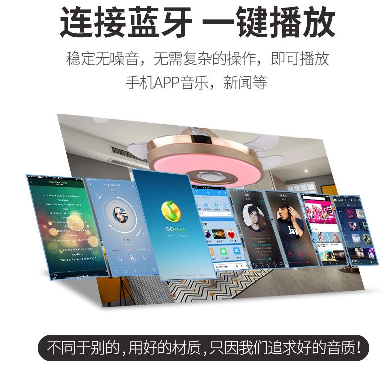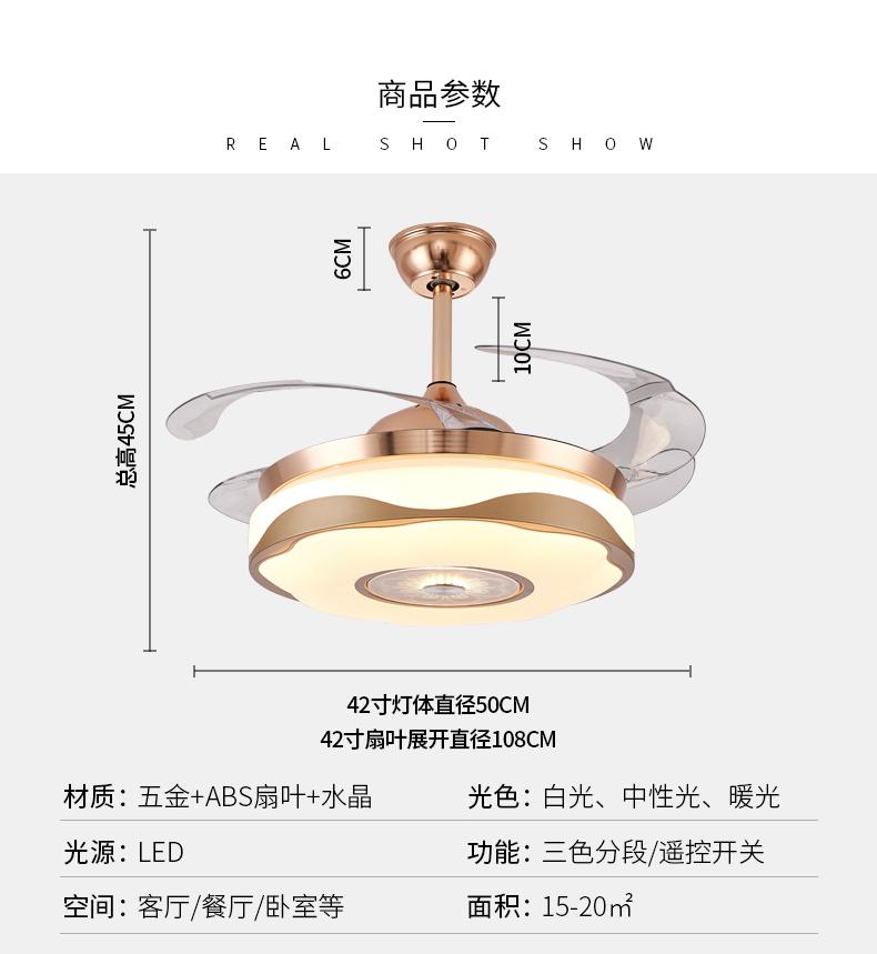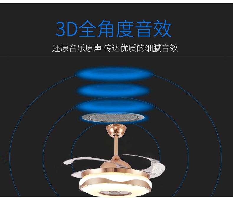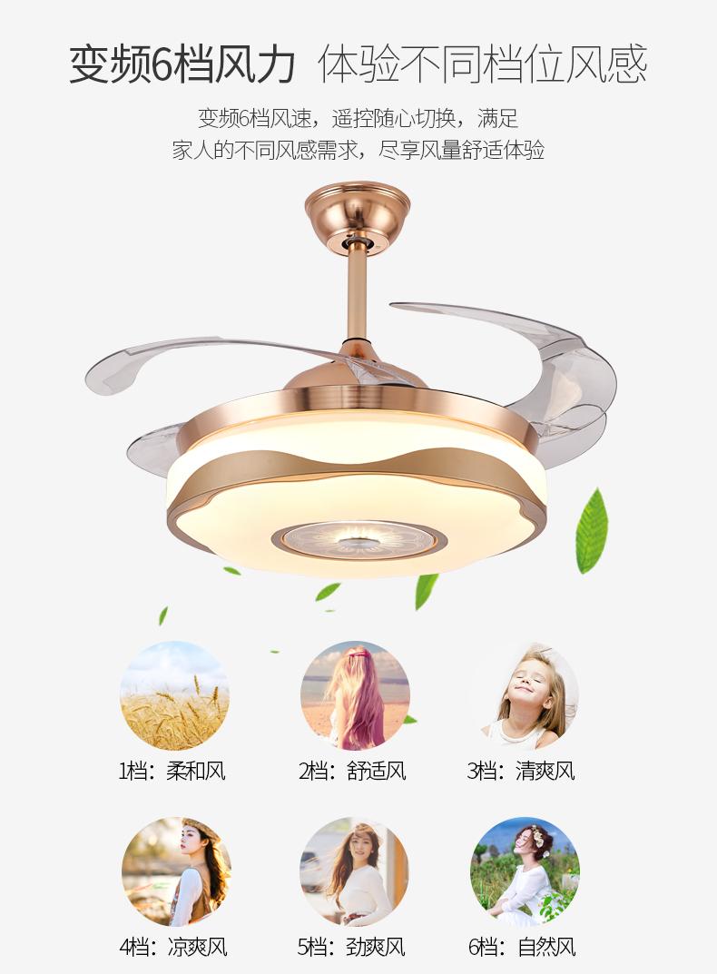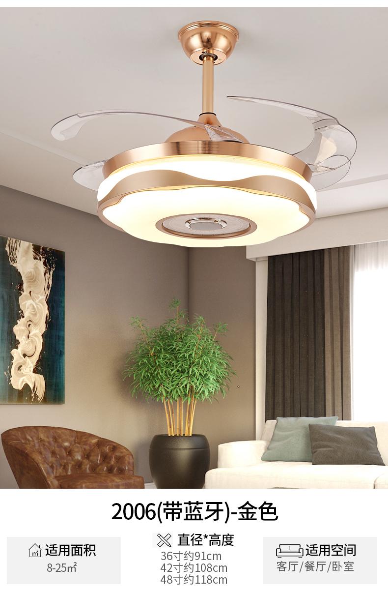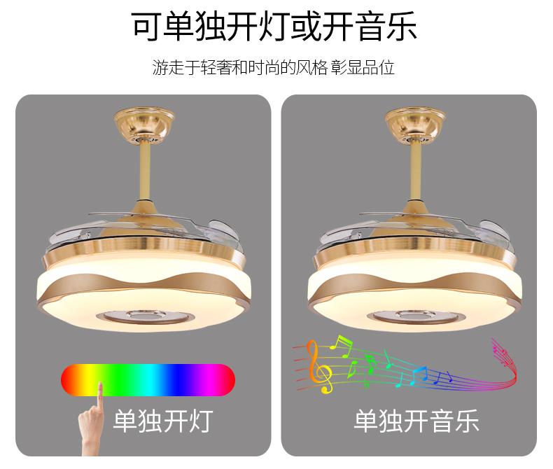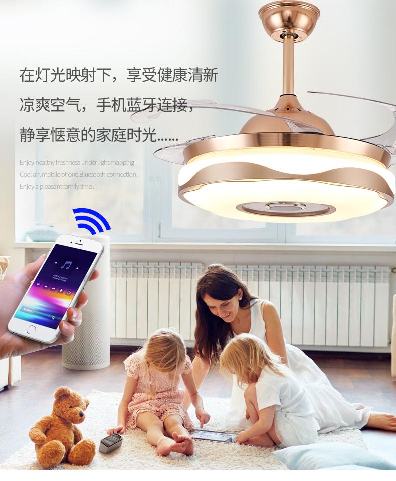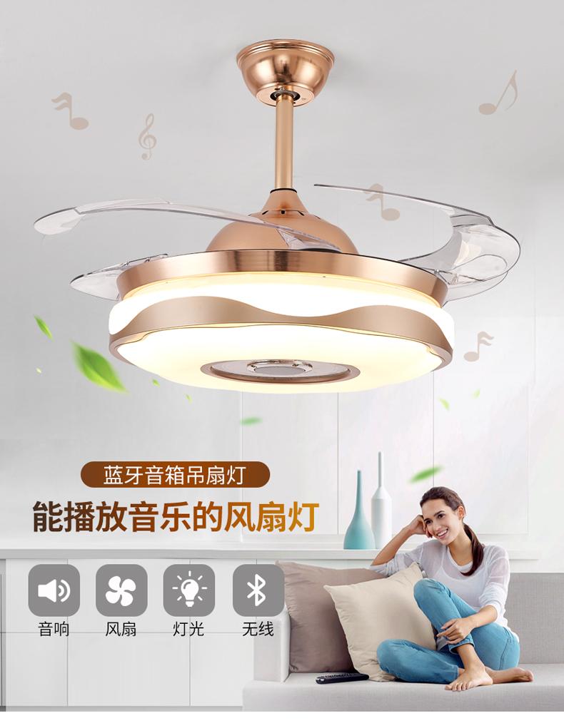 Lámpara de ventilador invisible, ventilador de techo, hogar, sala de estar, comedor, dormitorio, techo, Bluetooth, audio con ventilador eléctrico, lámpara de araña, conversión de frecuencia integrada