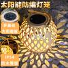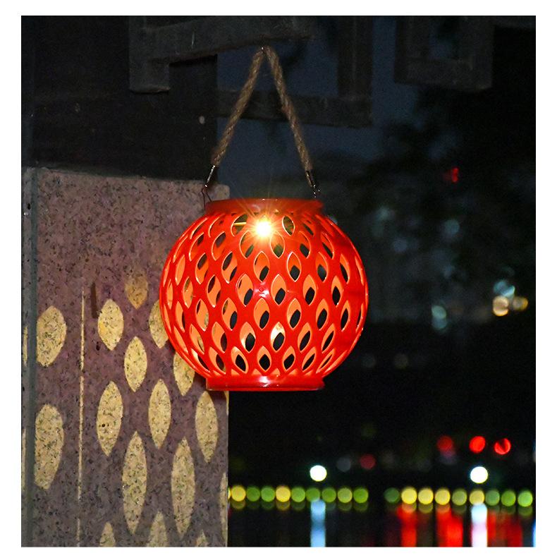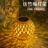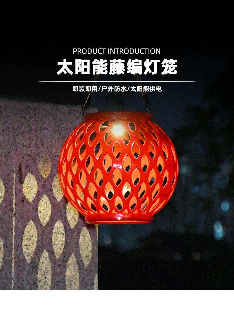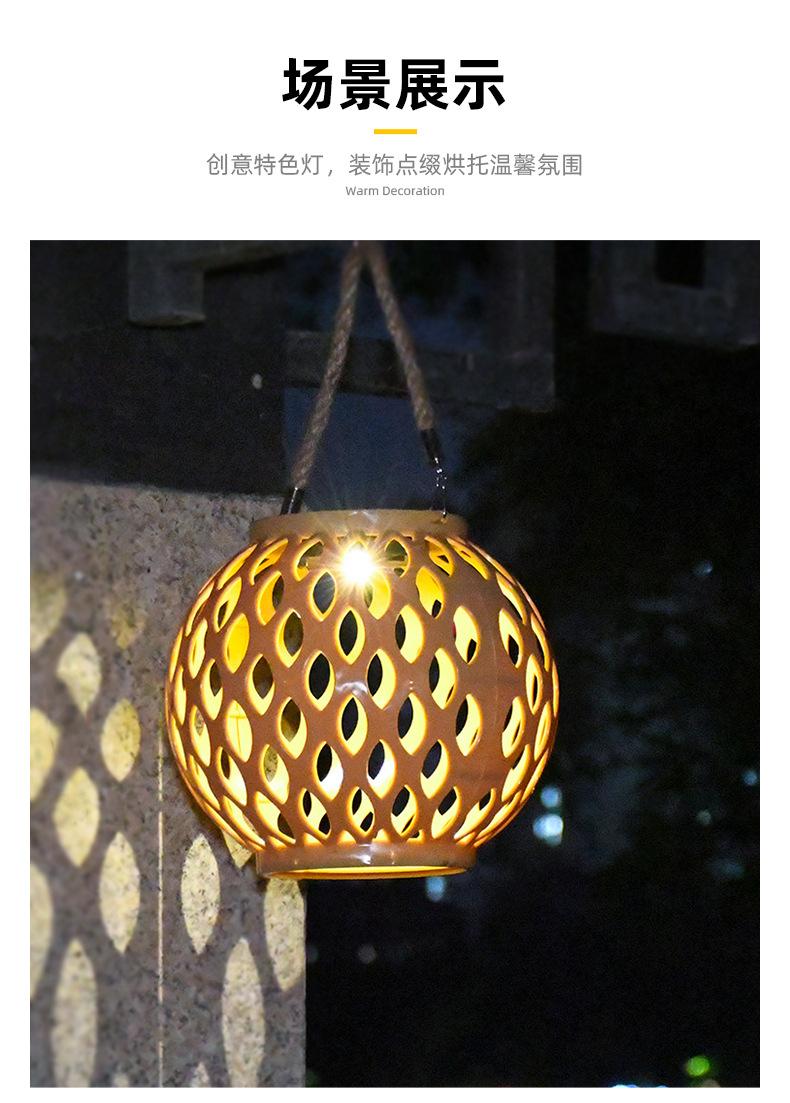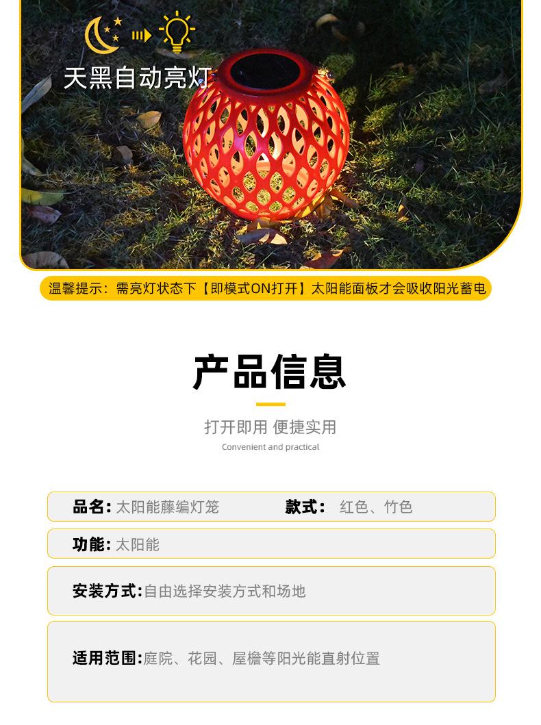 Exterior Imitación Bambú Tejido No. 5 Linterna Solar Caqui Color Madera Proyección Patio Lámpara de Césped Lámpara Decorativa Estilo Chino